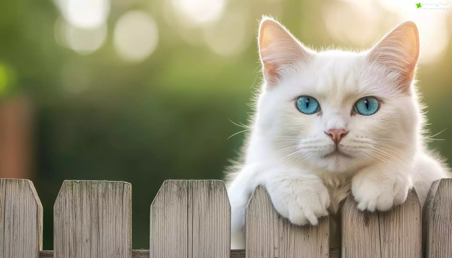 Zdjęcie Kot, Biały, Niebieskooki, Płot, Grafika