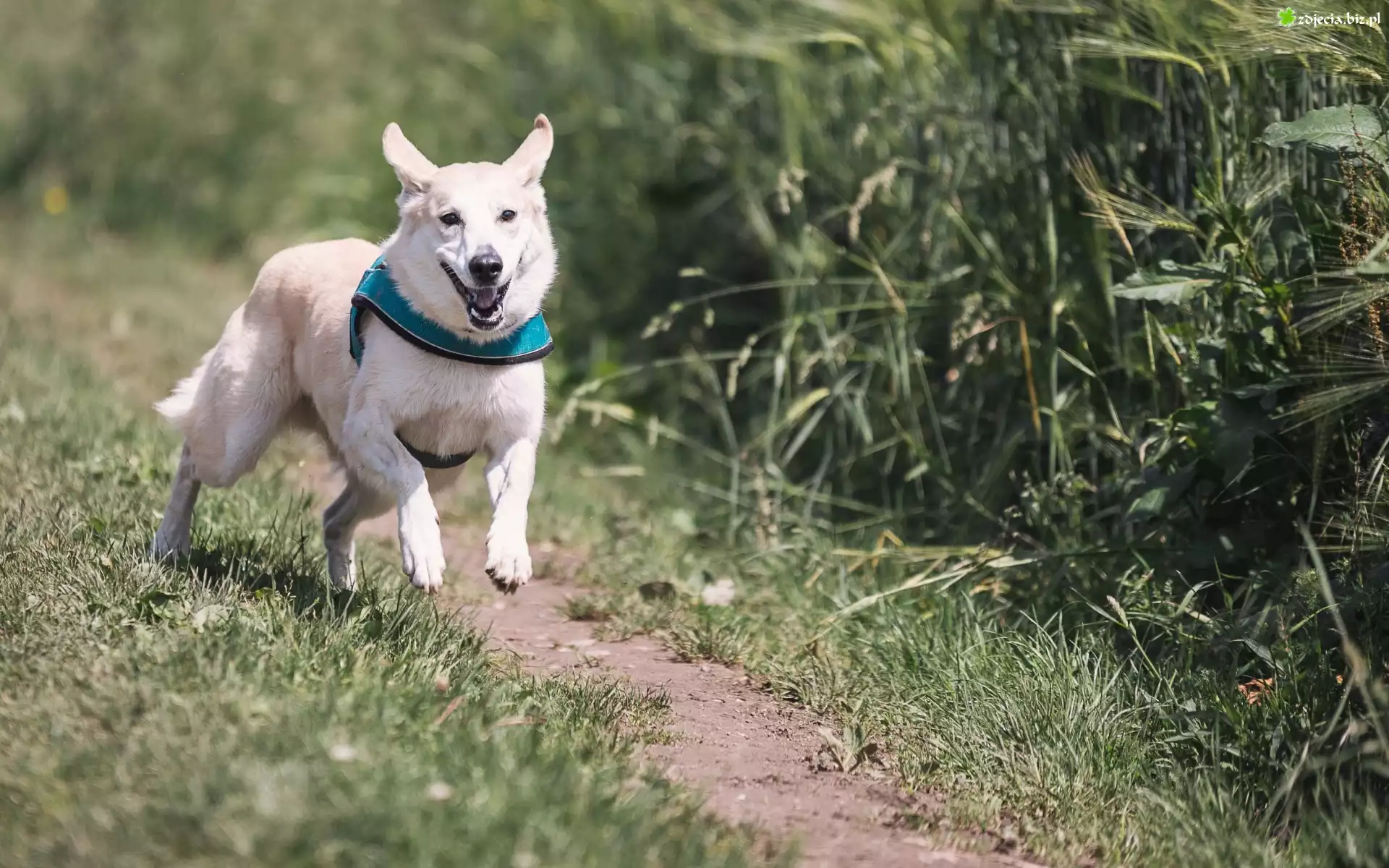 Zdjęcie Biały, Pies, Obroża, Bieg