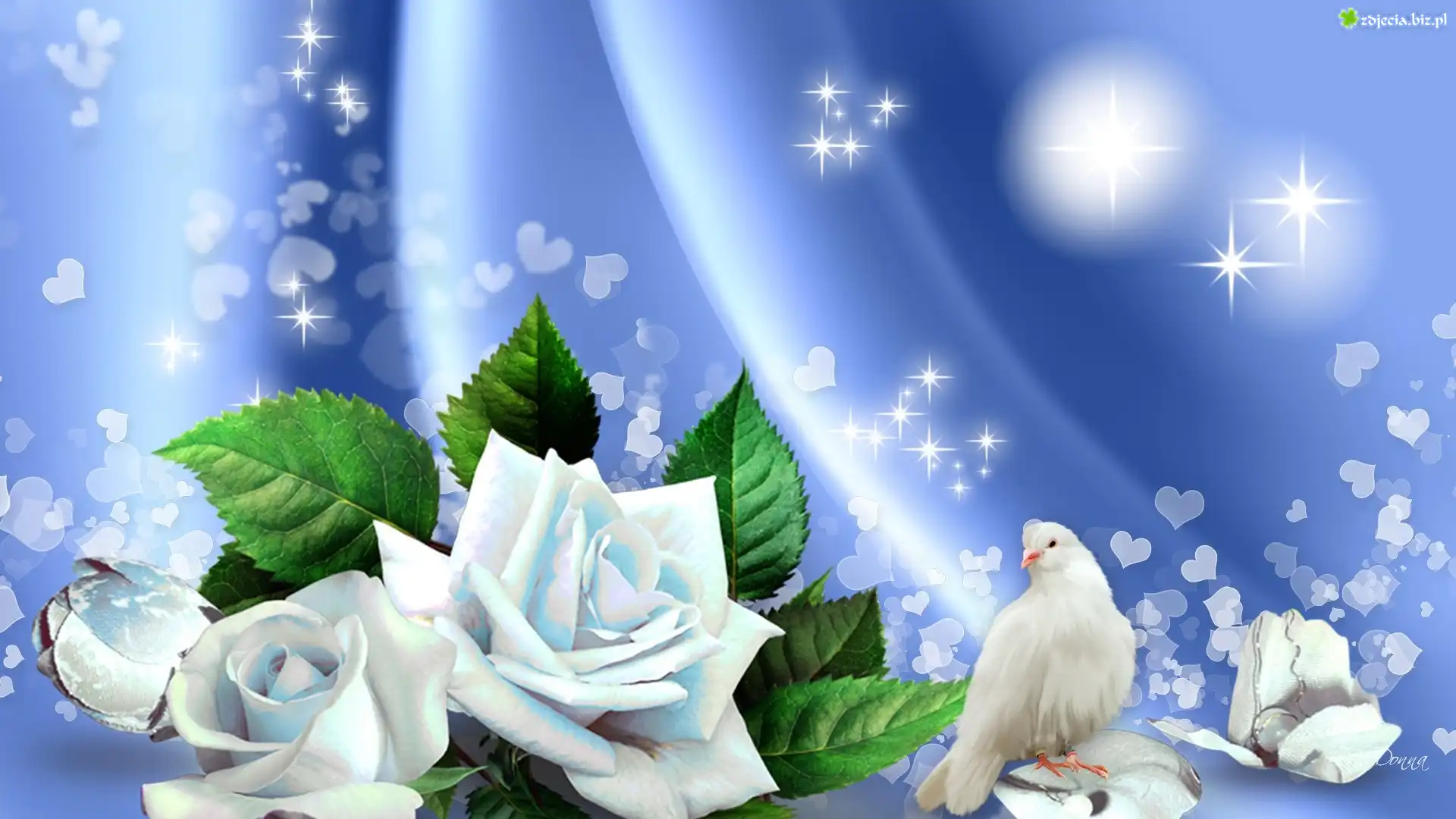 Zdjęcie Biały, Gołąbek, Róże, Grafika