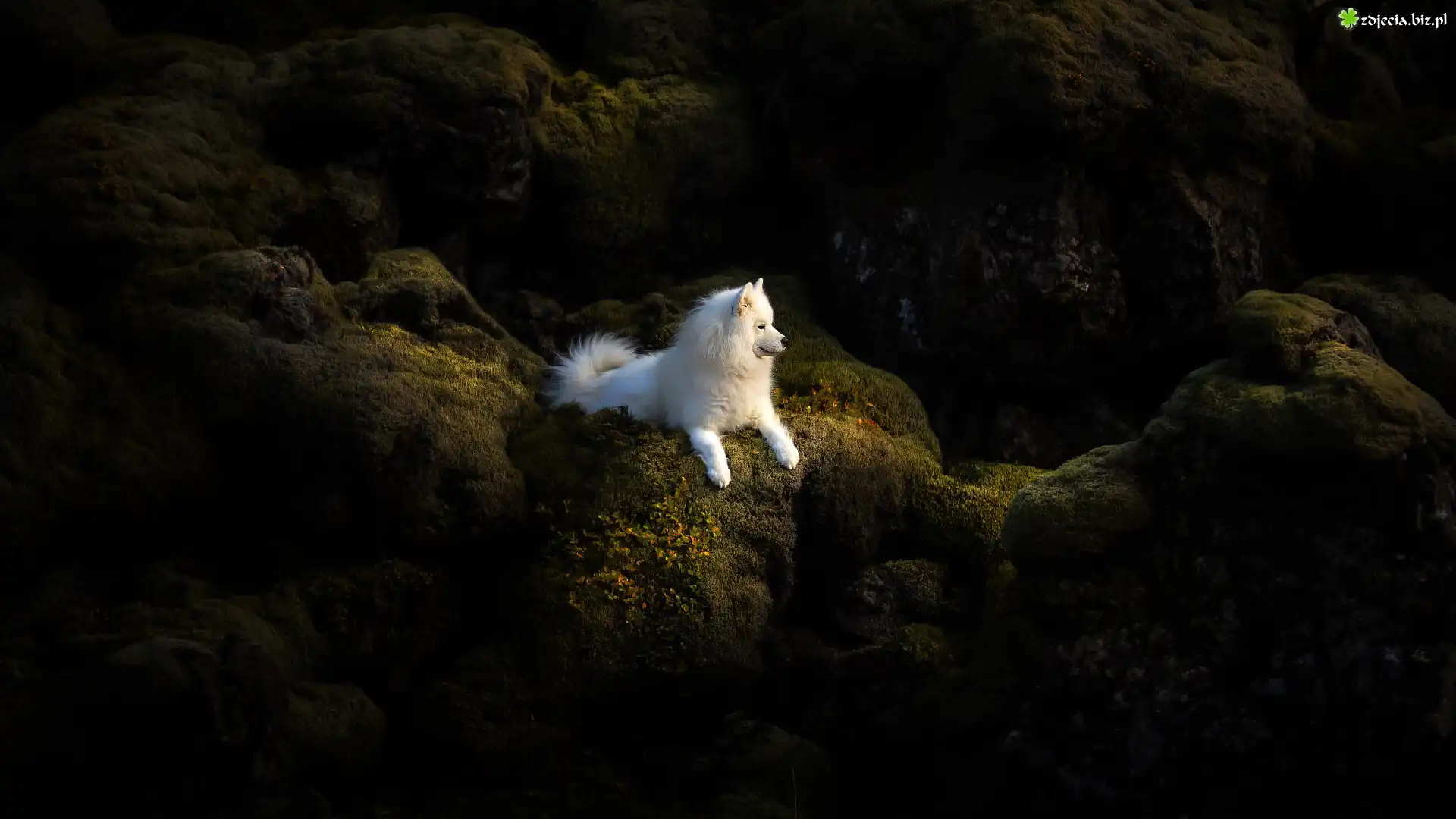 Zdjęcie Biały, Pies, Samojed, Skały