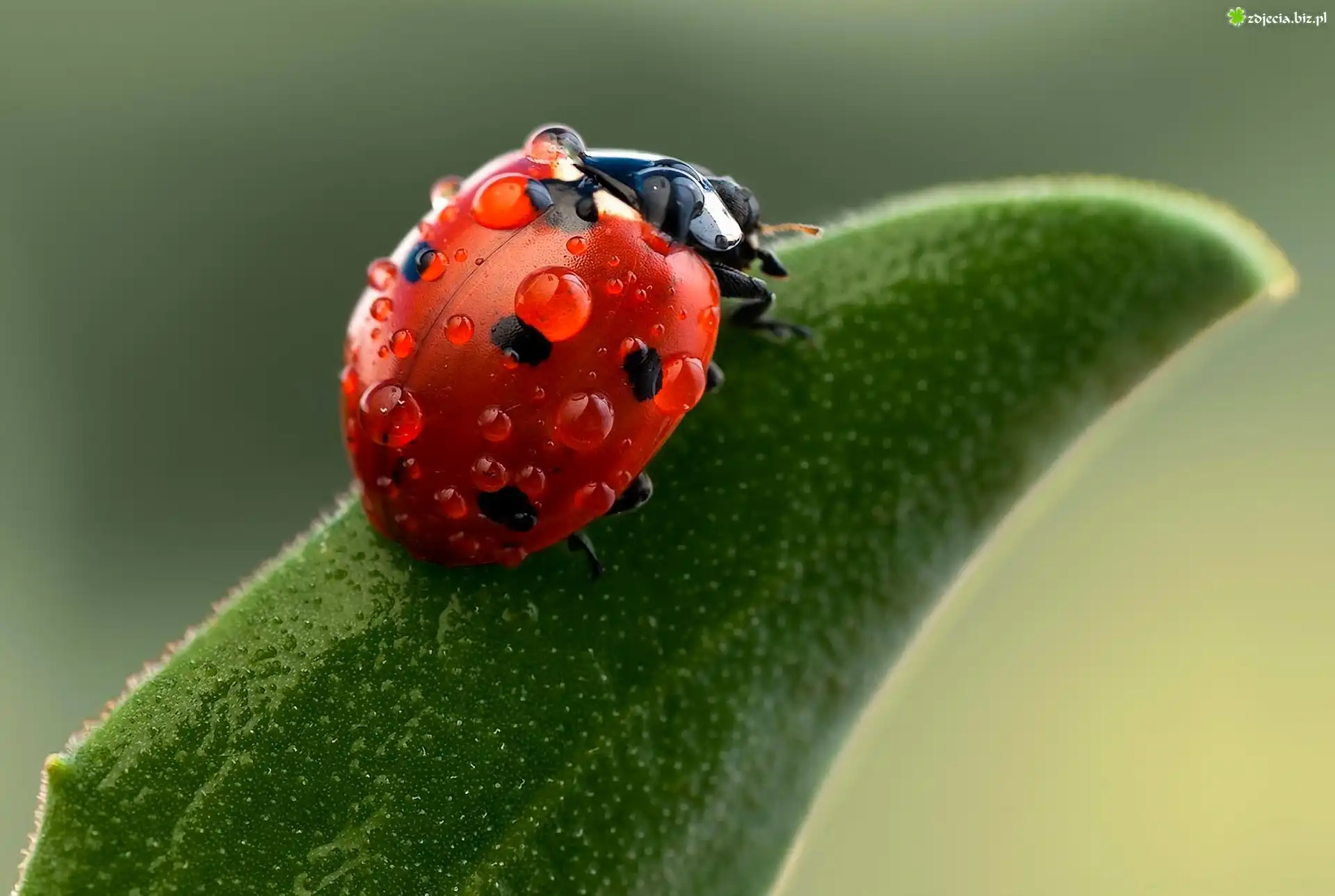 Zdjęcie Biedronka, Liść, Kropelki, Wody