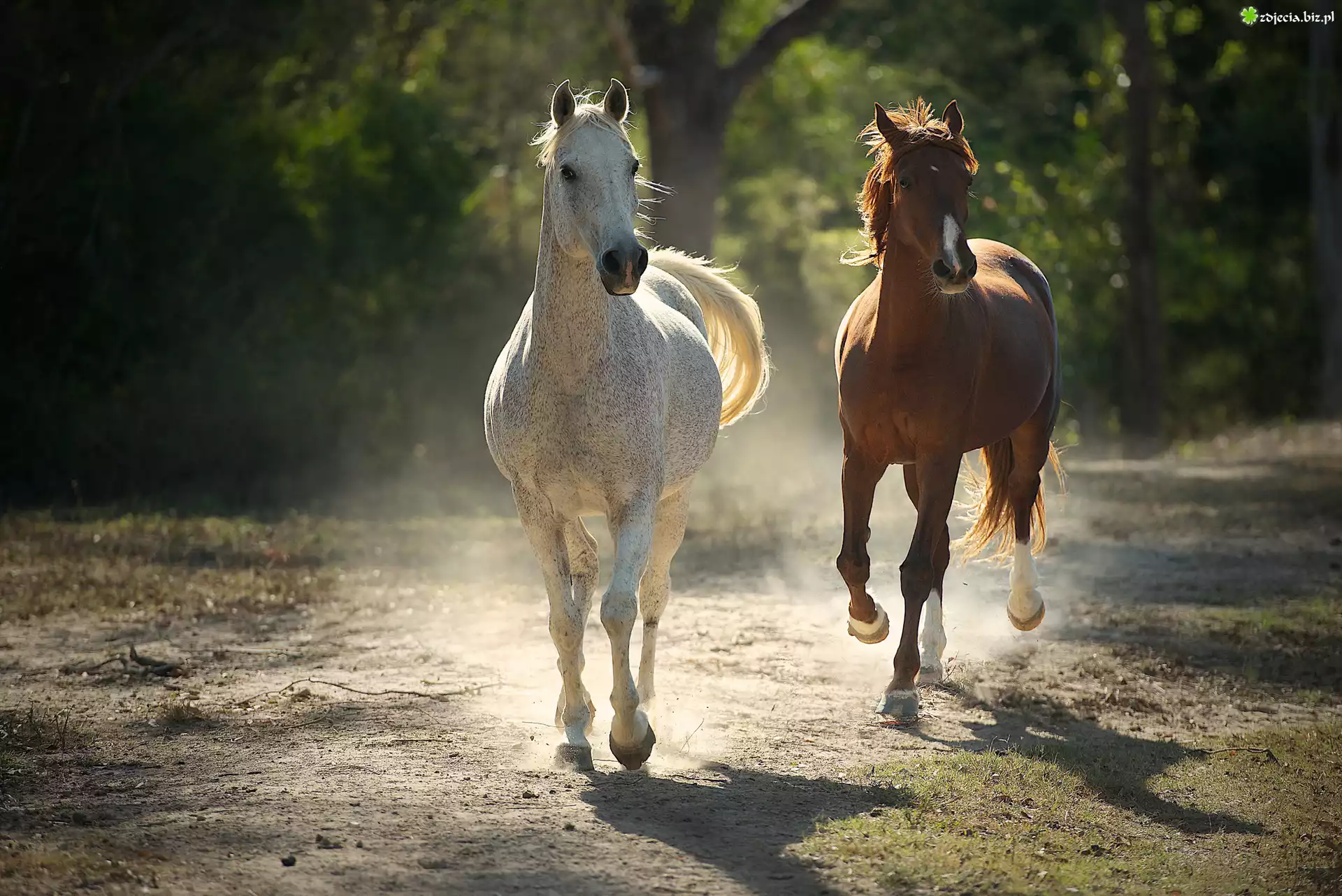 Zdjęcie Biegnące, Konie, Siwy, Kasztan