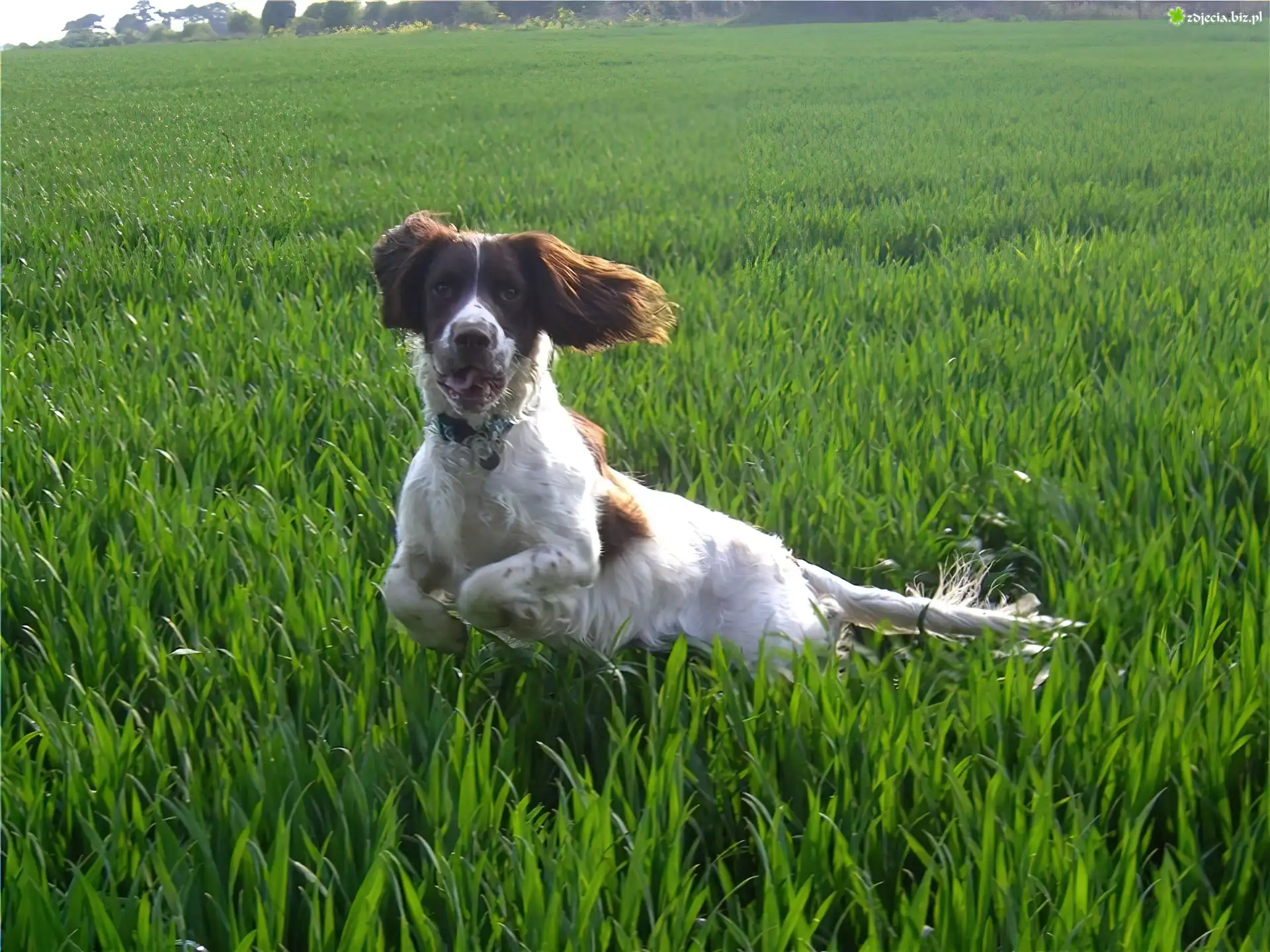 Pies, Springer spaniel angielski, Trawa, Mech Pies, Springer spaniel angielski, Łąka, Kwiaty, Mniszek Pies, Springer spaniel angielski, Żółte, Kwiaty Psy, Spaniele angielskie, Łąka Kot, Kładka, Wędka, Rybka, Puszka Springer spaniel angielski biegnący, Springer spaniel angielski