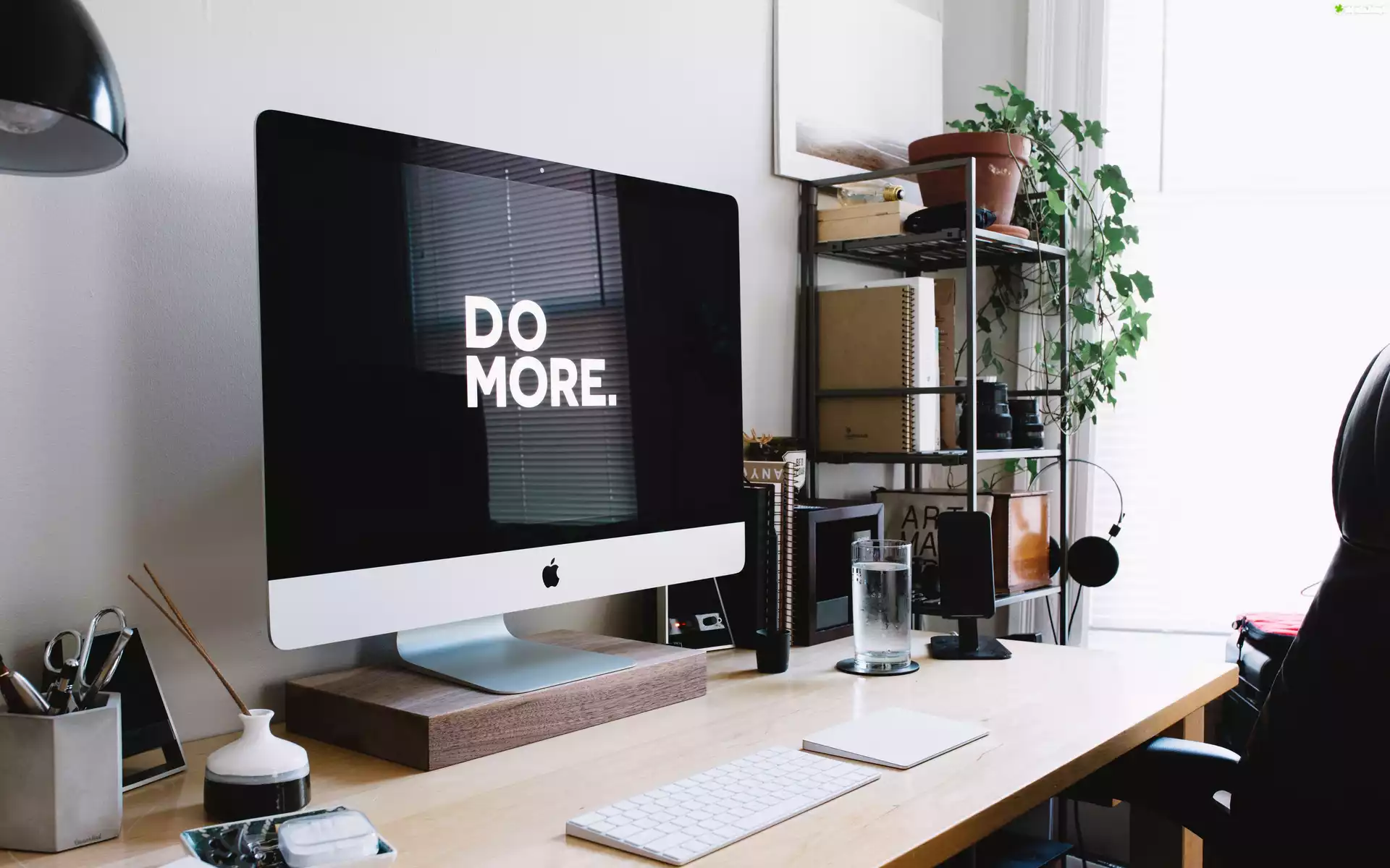 Zdjęcie Biurko, Monitor, Regał, Kwiat