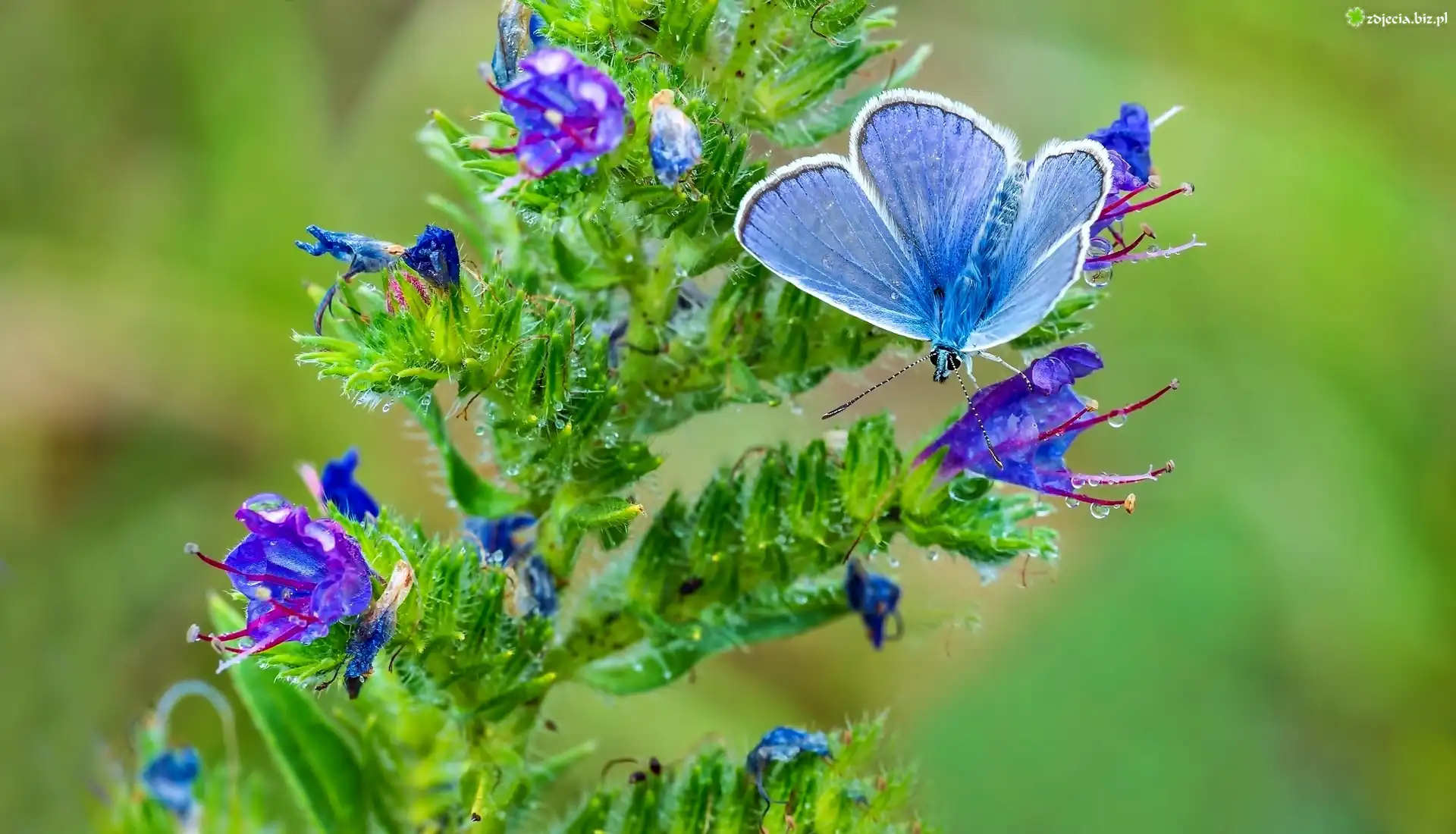 Zdjęcie Błękitny, Motyl, Kwitnąca, Roślina
