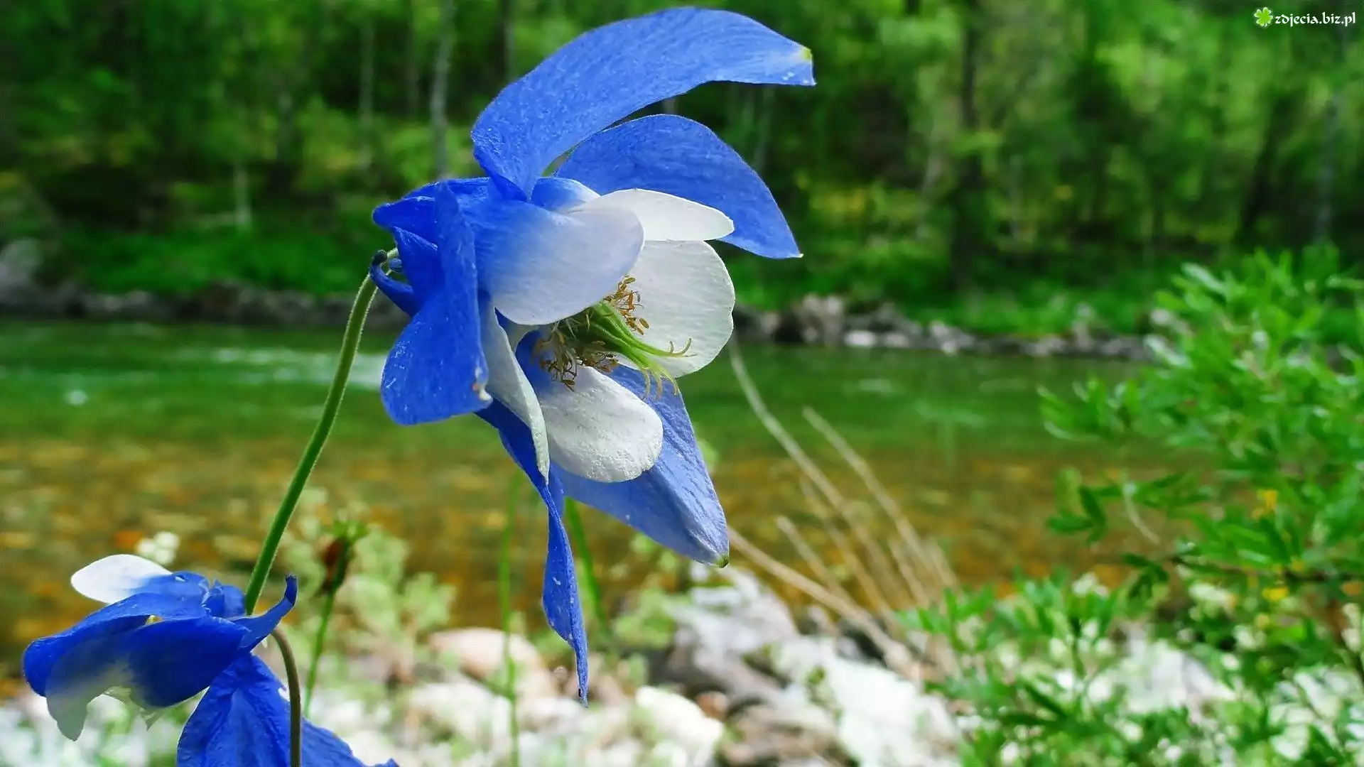 Góry San Juan Mountains, Góra Sneffels, Jezioro Blue Lake, Łąka, Kwiaty, Orlik niebieski, Stan Kolorado, Stany Zjednoczone, Orlik błękitny Orlik Błękitny, Makro