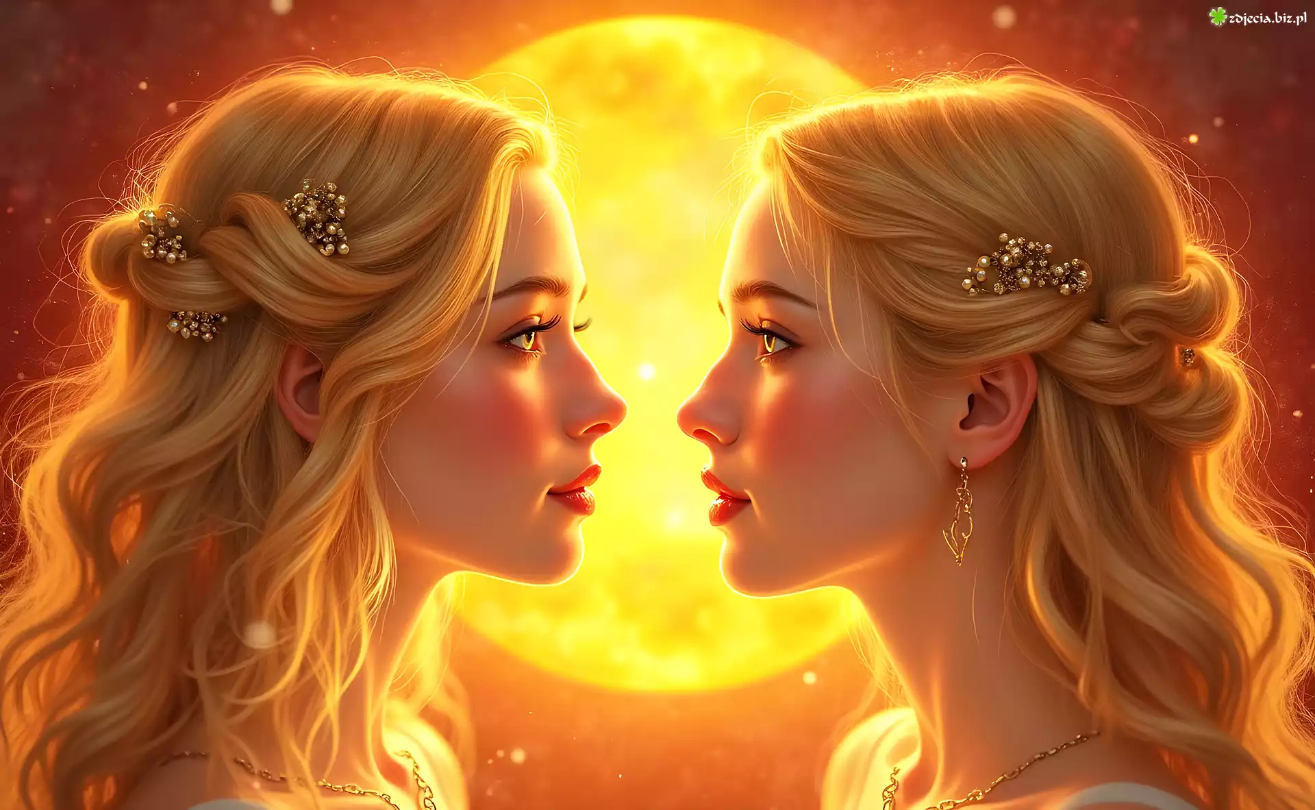 Zdjęcie Kobiety, Bliźniaczki, Biżuteria, Słońce, Grafika