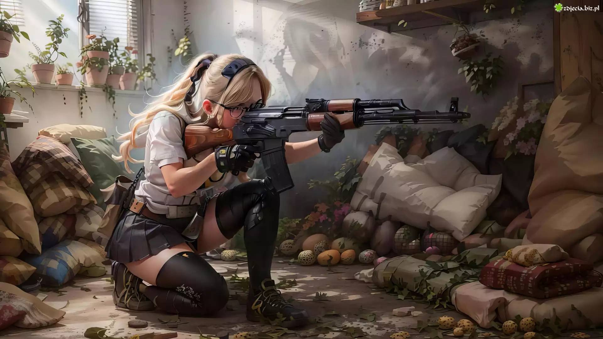 Zdjęcie Dziewczyna, Blondynka, Broń, Karabin, Grafika