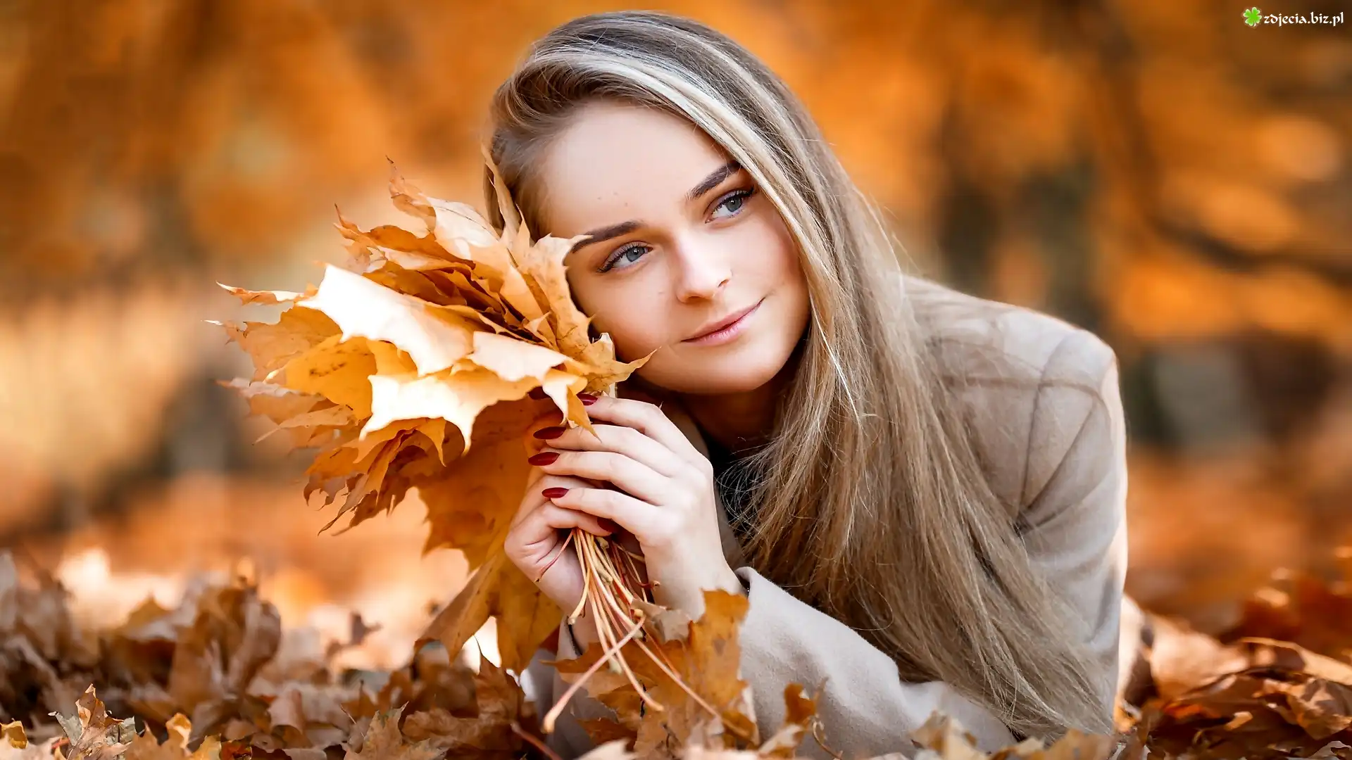 Zdjęcie Blondynka, Kobieta, Jesienne, Liście