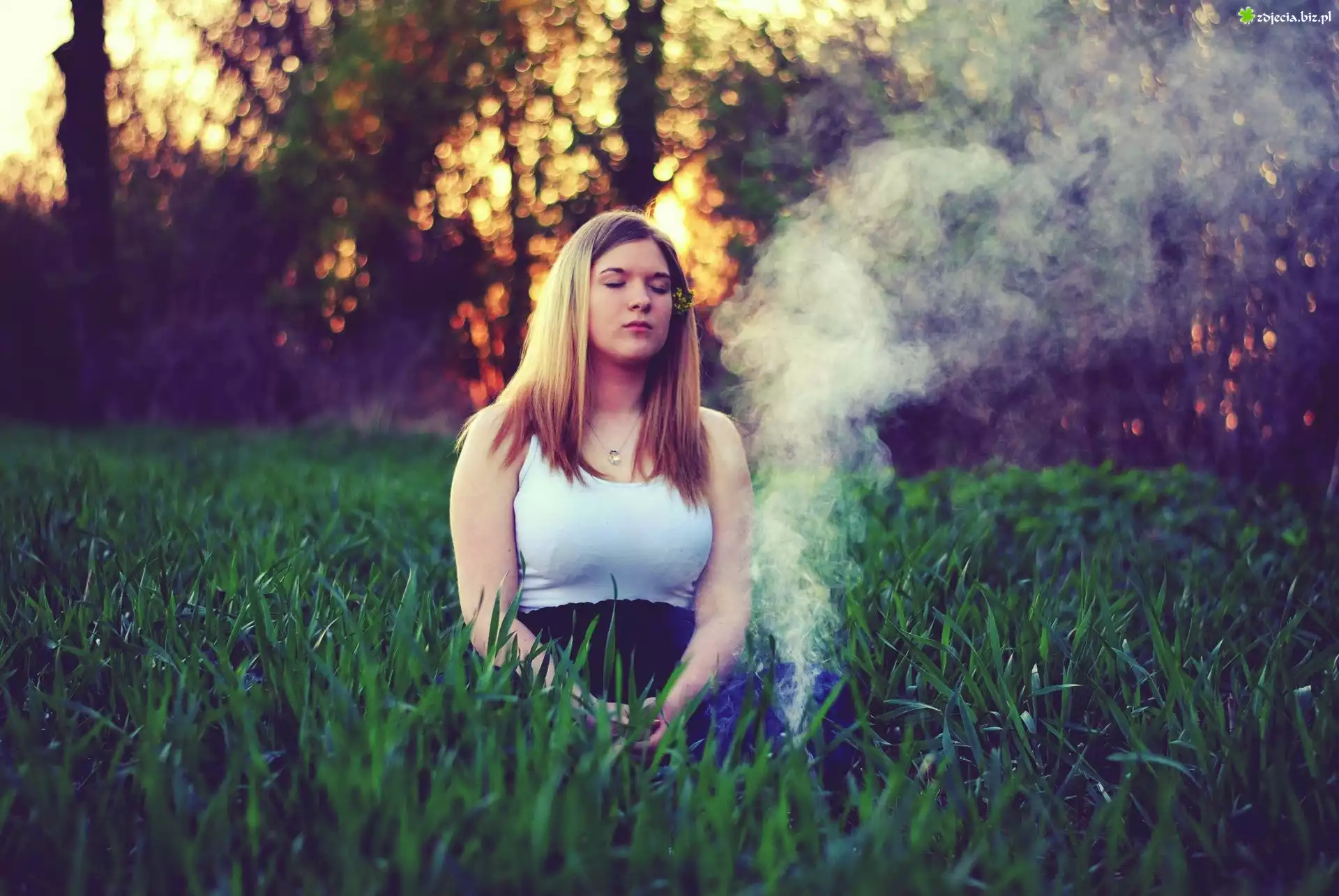 Zdjęcie Kobieta, Blondynka, Dym