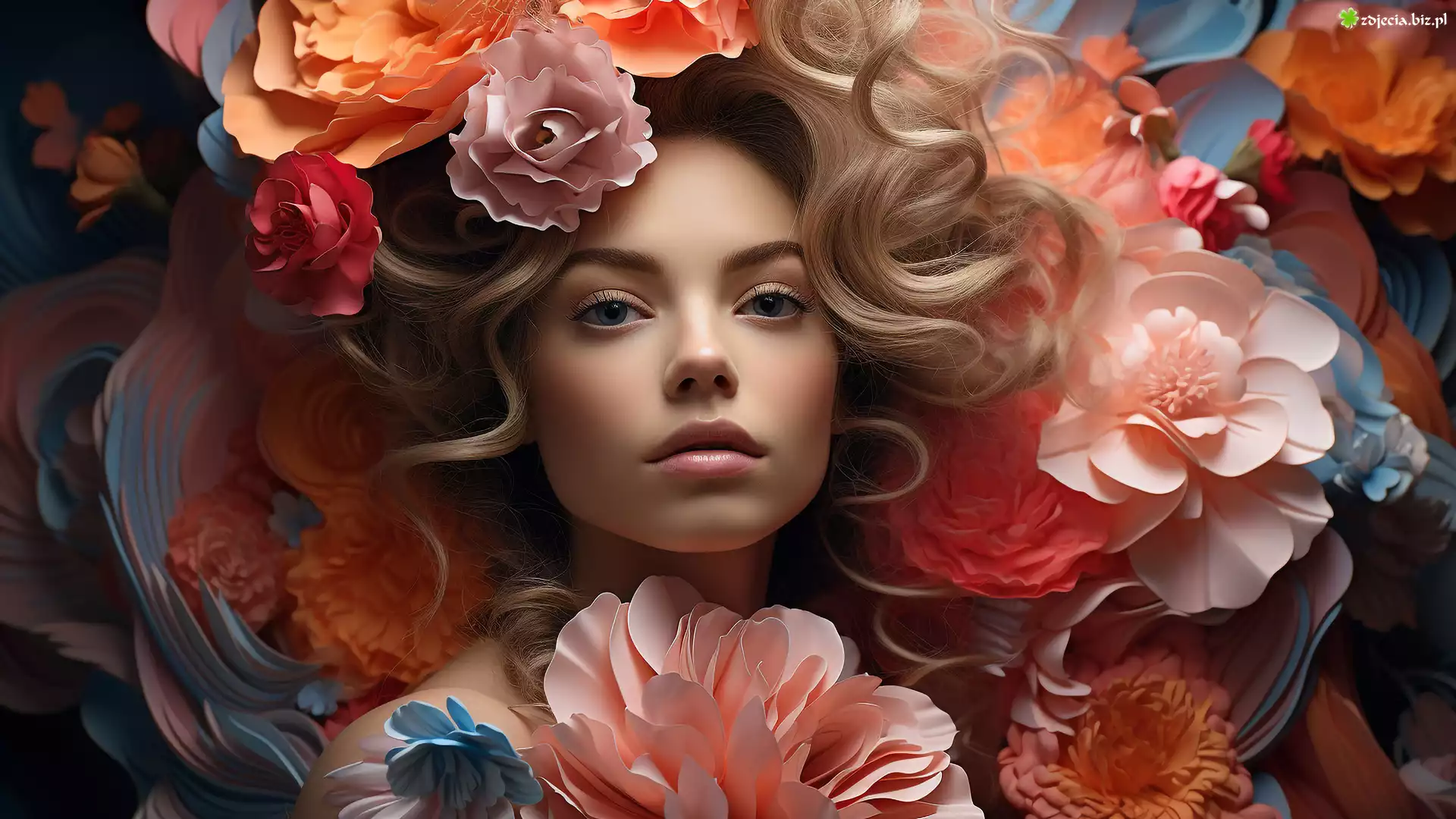 Zdjęcie Kobieta, Kwiaty, Spojrzenie, Blondynka