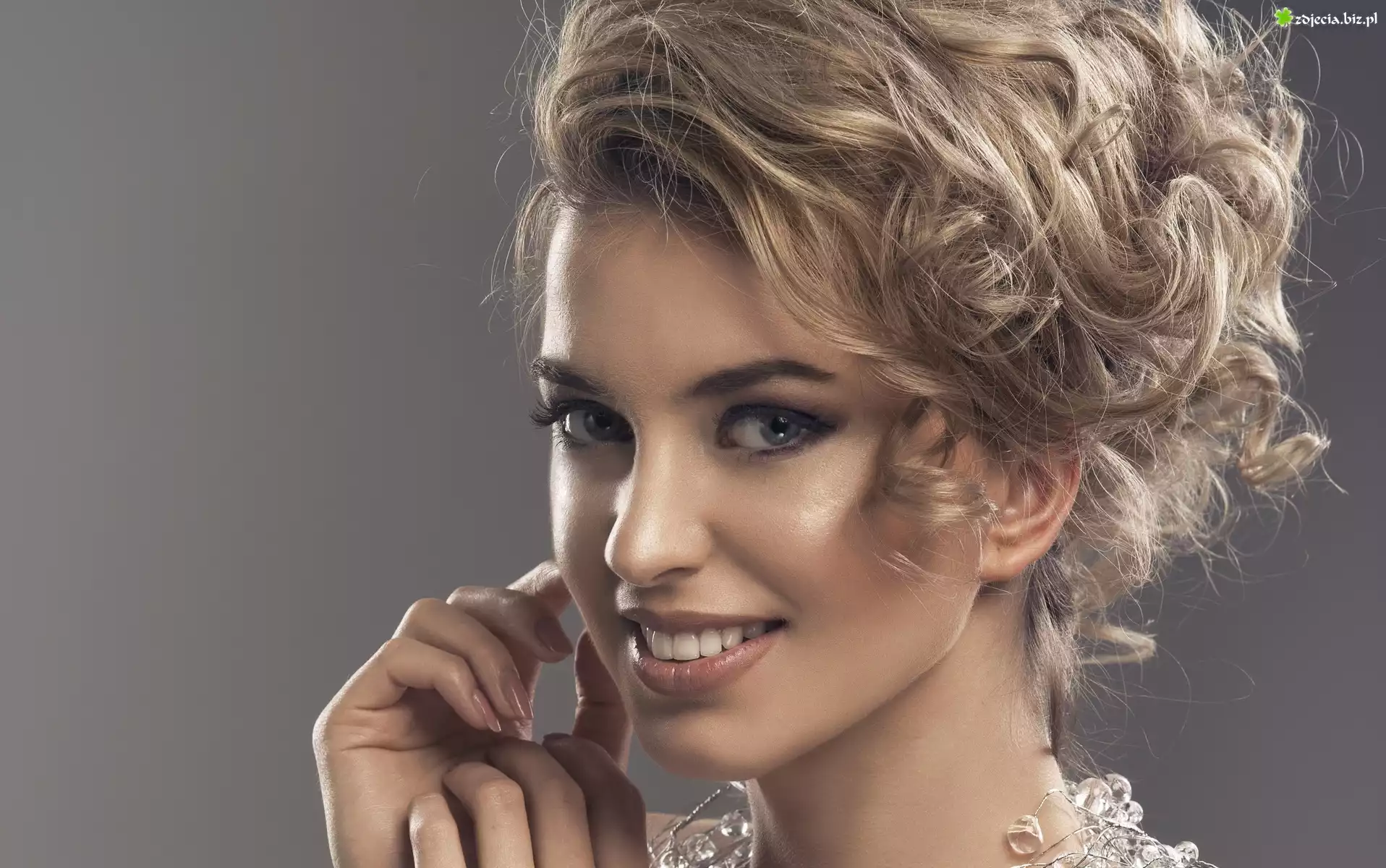Zdjęcie Blondynka, Modelka, Makijaż, Kryształowy, Naszyjnik