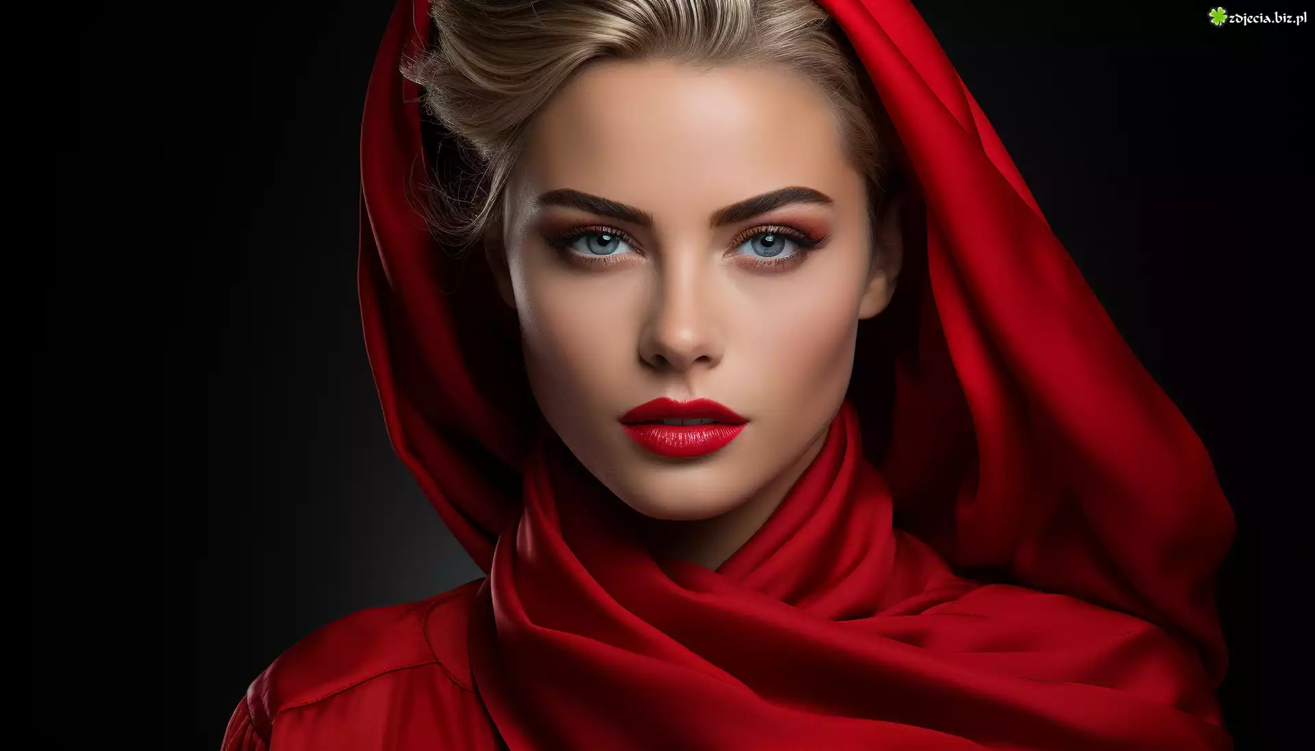 Zdjęcie Kobieta, Blondynka, Makijaż, Chusta, Czerwona