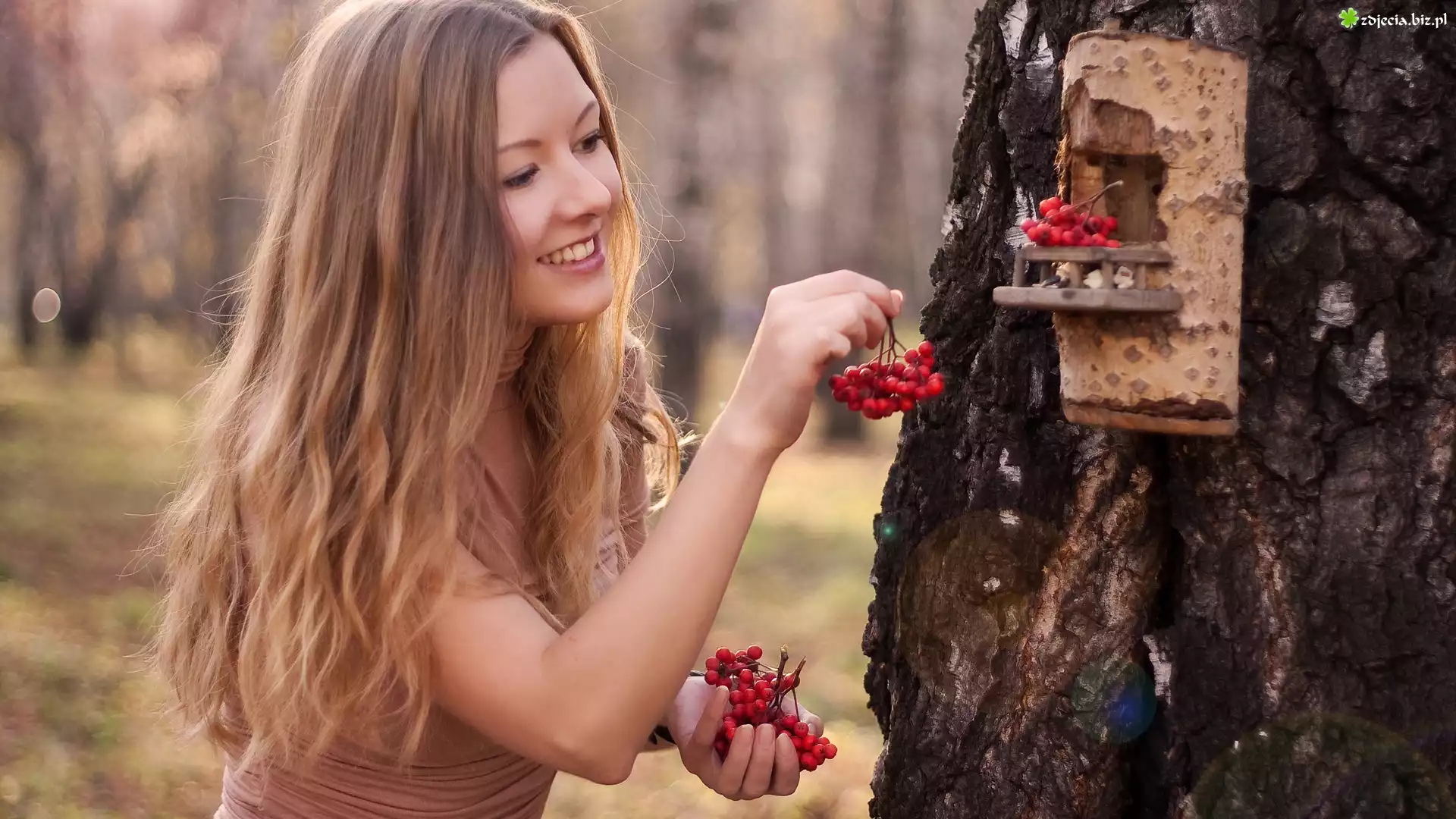 Zdjęcie Blondynka, Las, Karmnik, Dla, Ptaków, Jarzębina