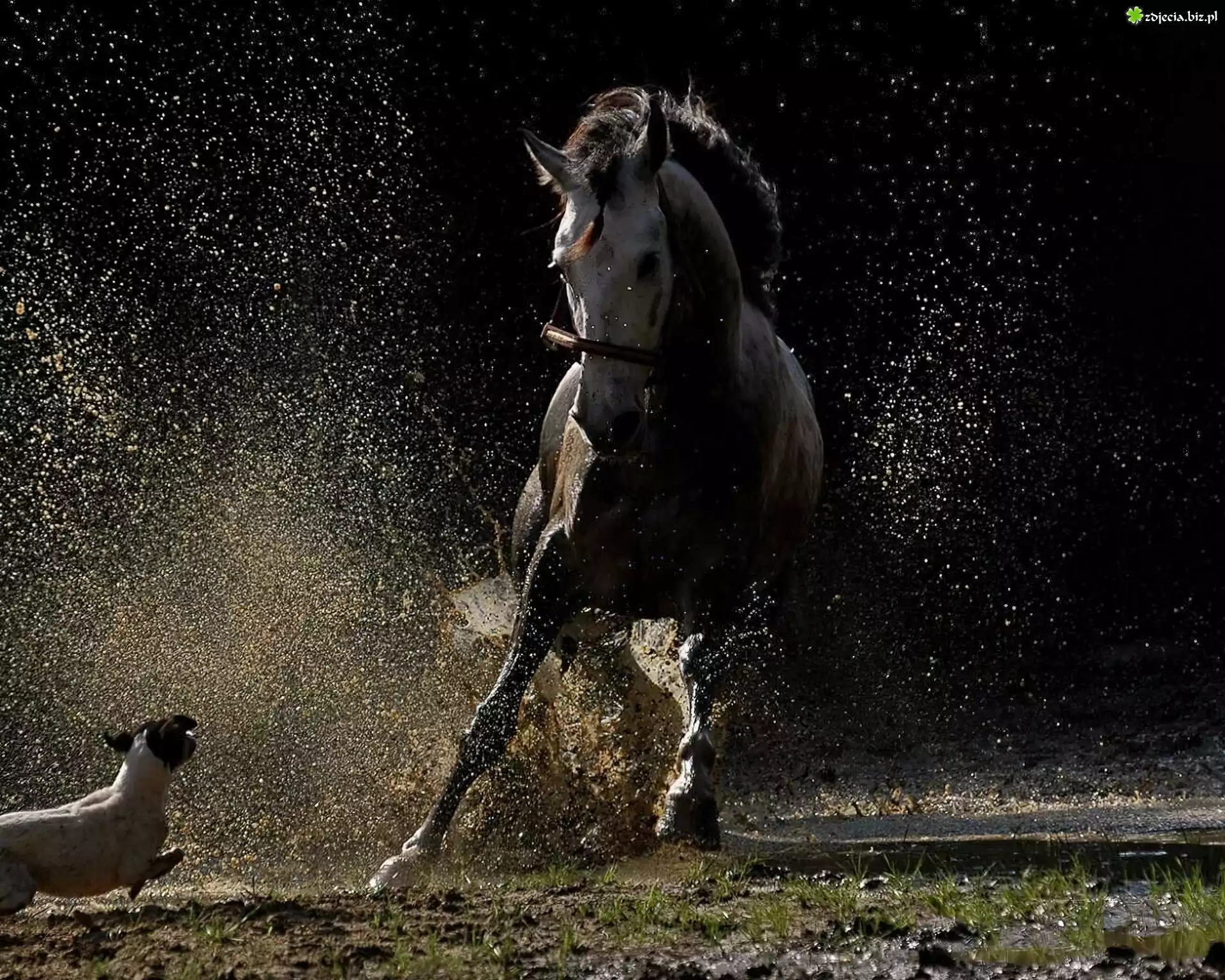 Zdjęcie Koń, Błoto, Pies