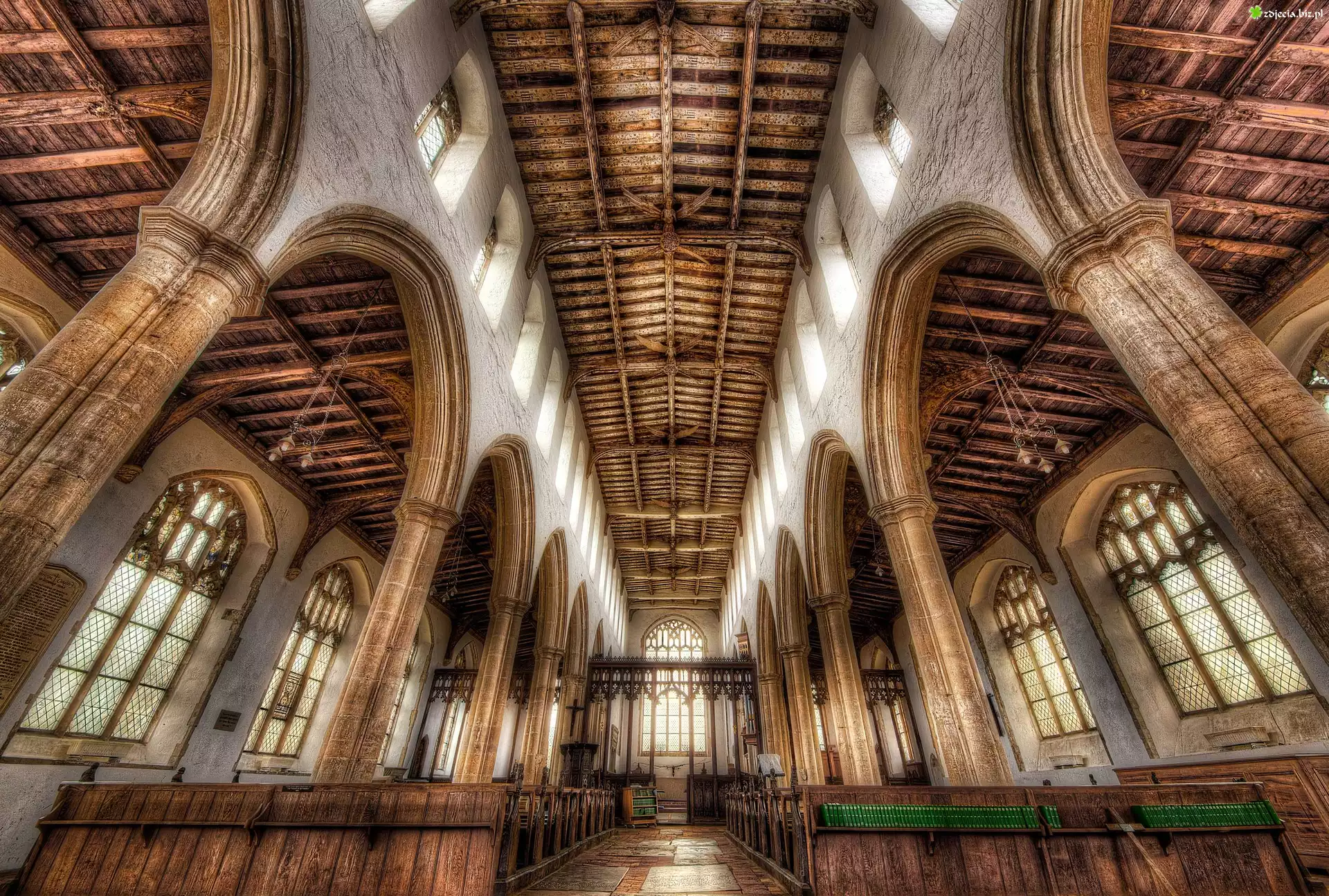 Zdjęcie, Anglia, Blythburg, Wnętrze, Kościół Świętej Trójcy, HDR