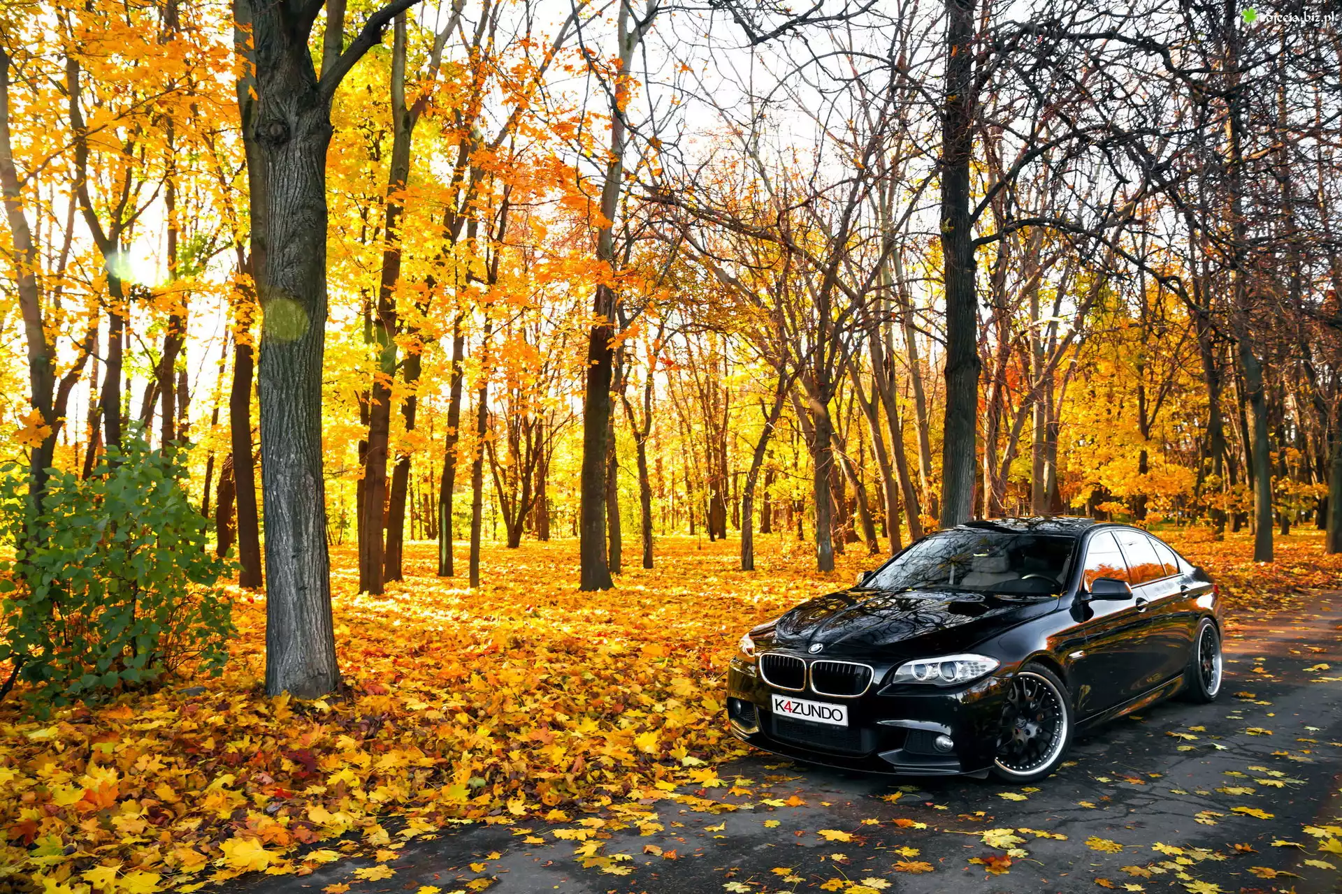 Zdjęcie BMW seria 5 F10, Droga, Park, Jesień, Drzewa