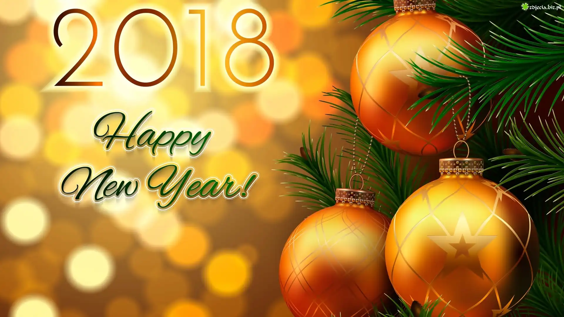 Zdjęcie Sylwester, Nowy Rok, 2018, Happy New Year, Choinka, Bombki, Bokeh