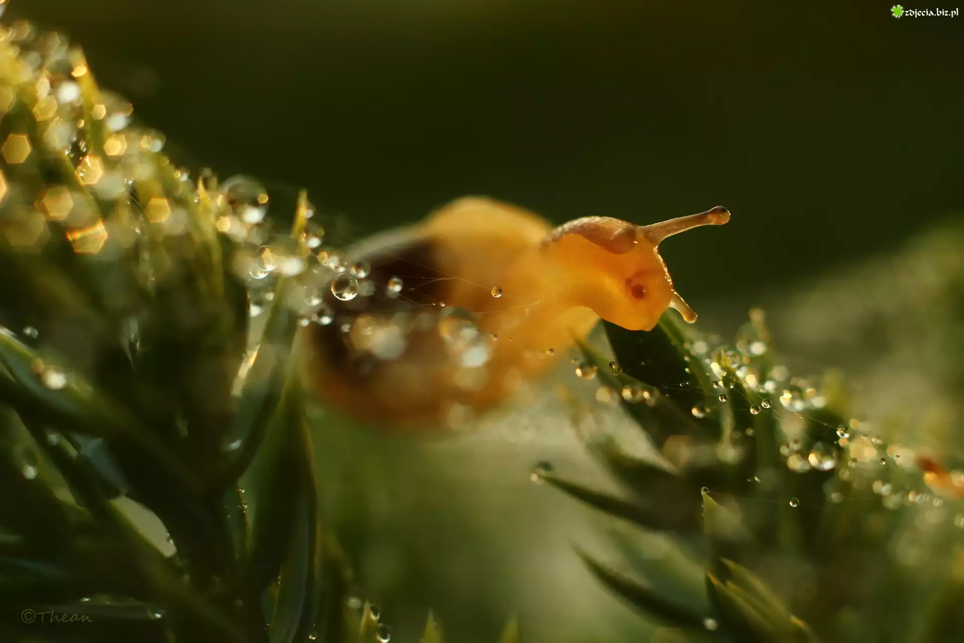 Zdjęcie Ślimak, Bokeh, Kropelki