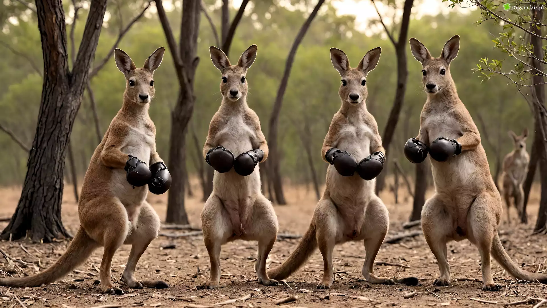 Zdjęcie Grafika, Kangury, Rękawice bokserskie, Drzewa, Śmieszne