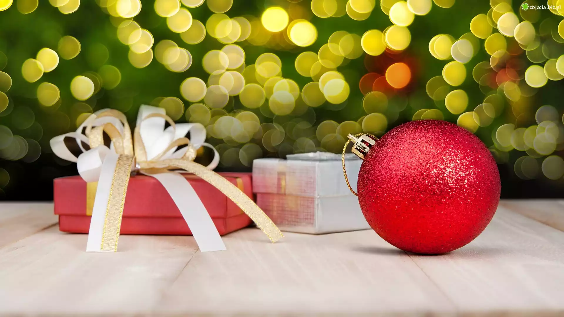 Zdjęcie, Świąteczna, Dekoracja, Prezenty, Bombka, Bokeh