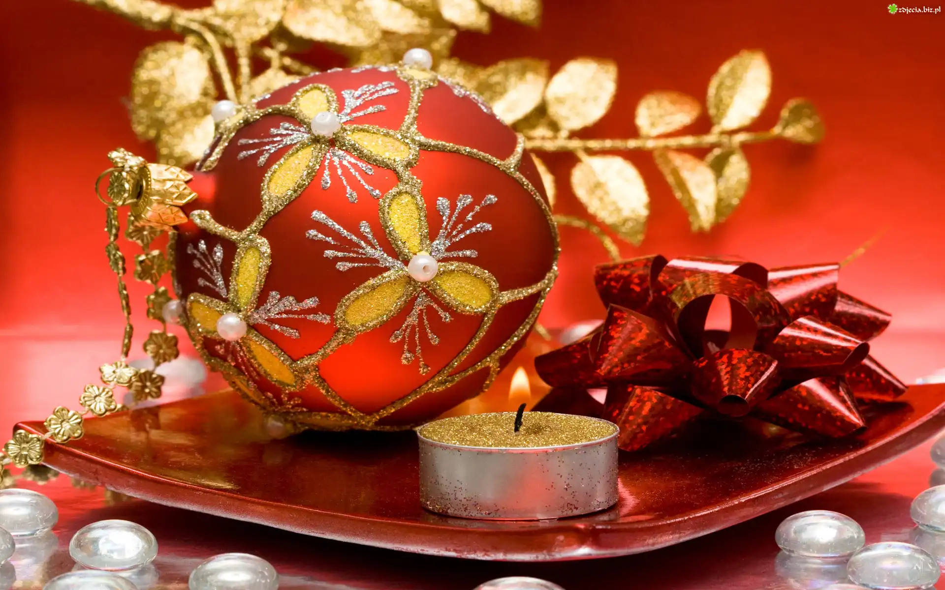 Zdjęcie, Bombka, Świeca, Gałązka, Kompozycja, Świąteczna
