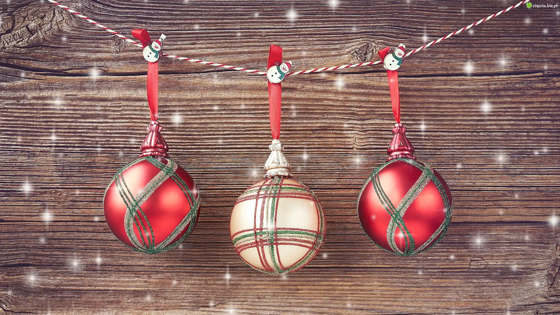 Zdjęcie Świąteczna, Dekoracja, Trzy, Bombki, Sznurek