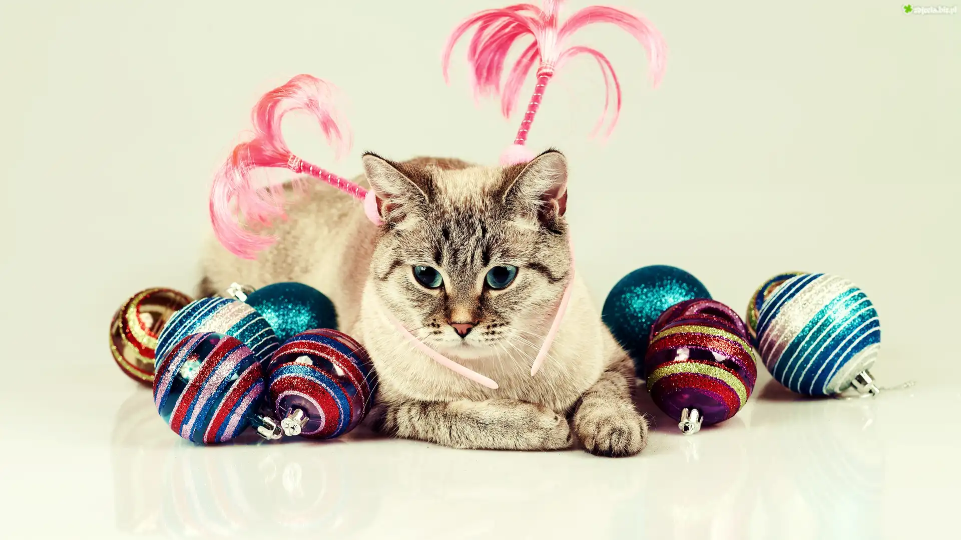 Zdjęcie Kot, Bombki, Świąteczne