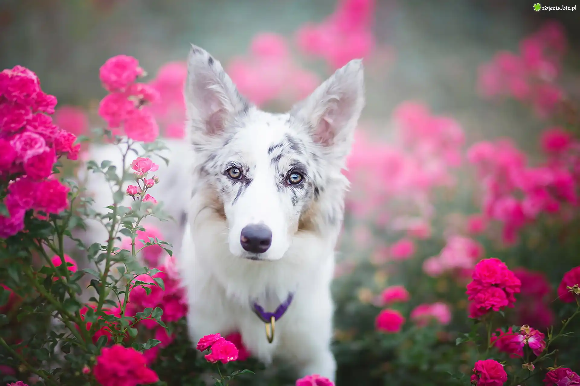 Zdjęcie Border collie, Portret, Kwiaty, Róże