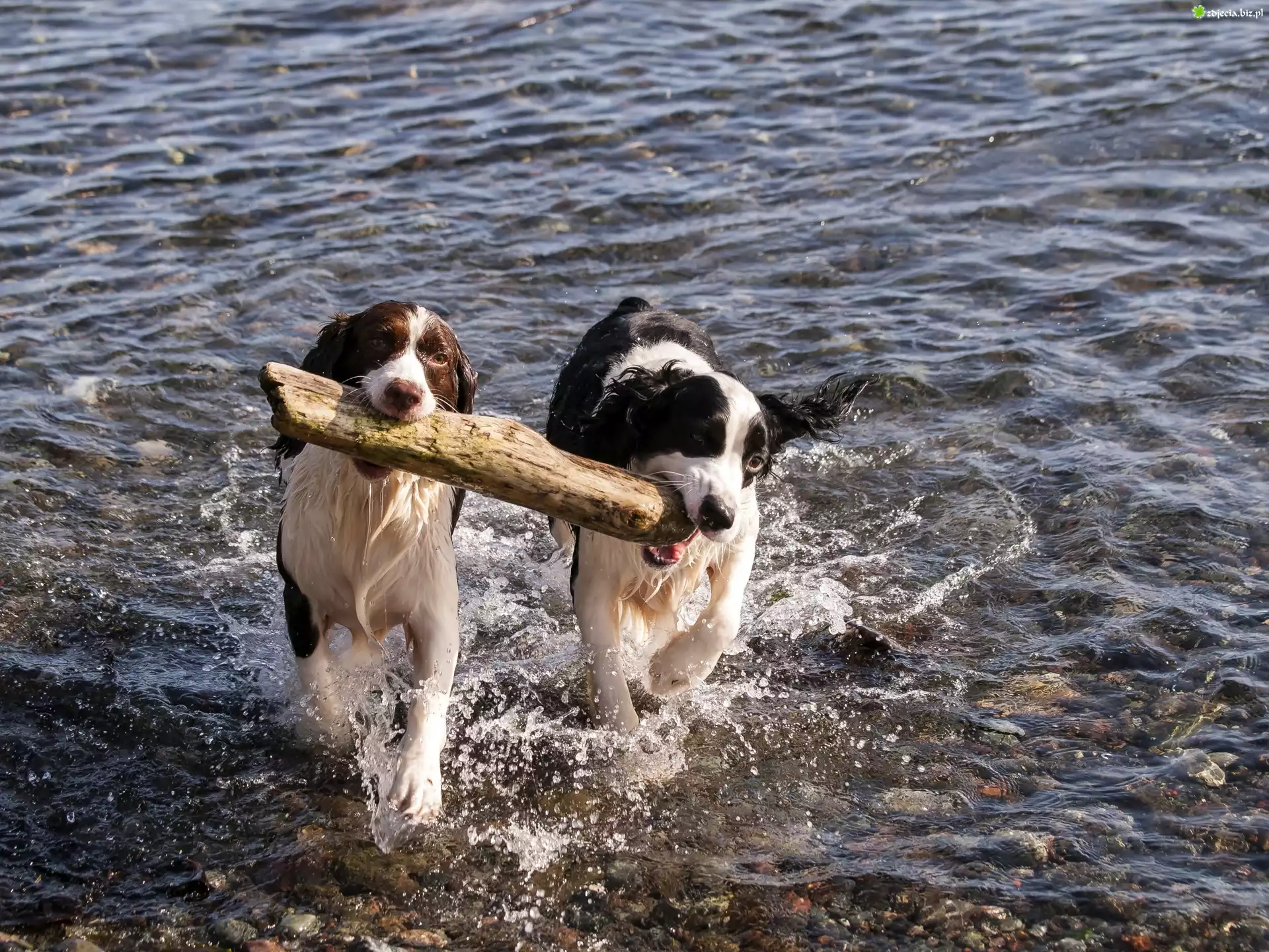Zdjęcie, Border Collie, Szczeniaki, Drewno, Zabawa, Rzeka