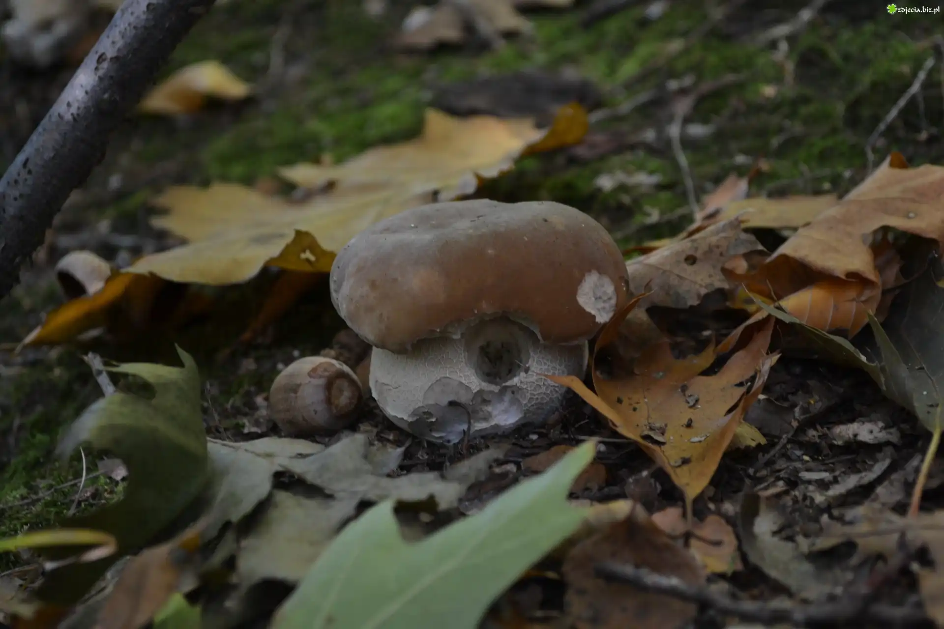 Zdjęcie, Borowik Szlachetny, Liście, Żołędź