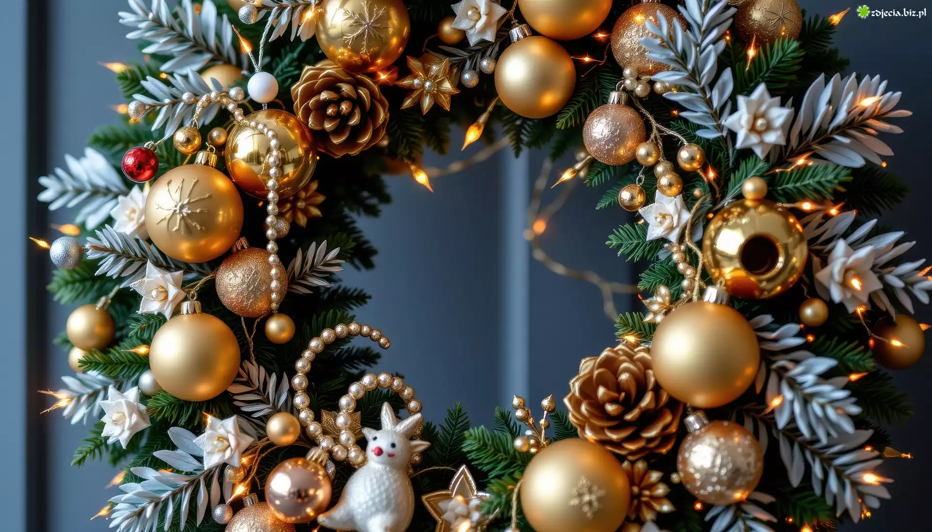 Zdjęcie Boże Narodzenie, Wianek, Bombki, Szyszki, Ozdoby, Dekoracja, Grafika AI