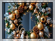 Zdjęcie, Boże Narodzenie, Wianek, Bombki, Szyszki, Ozdoby, Dekoracja, Grafika AI