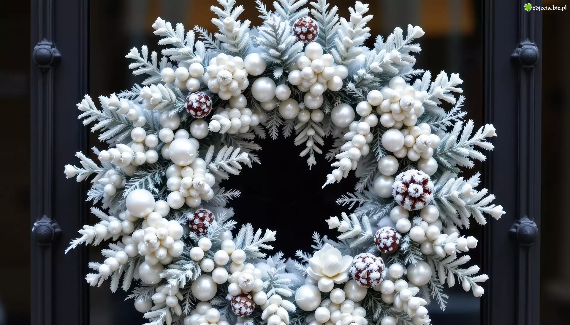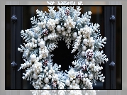 Zdjęcie Boże Narodzenie, Ośnieżony, Biały, Wieniec, Szyszki, Gałązki, Grafika AI