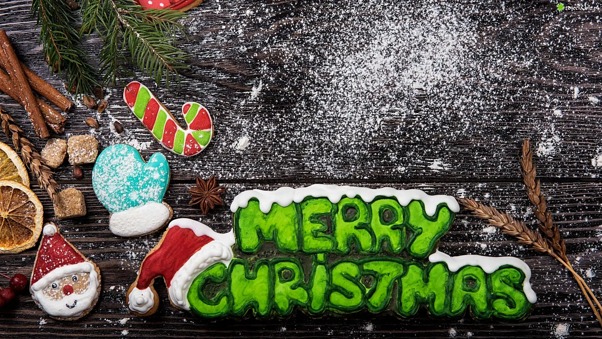 Zdjęcie Kompozycja, Boże Narodzenie, Napis, Merry Christmas, Pierniczki