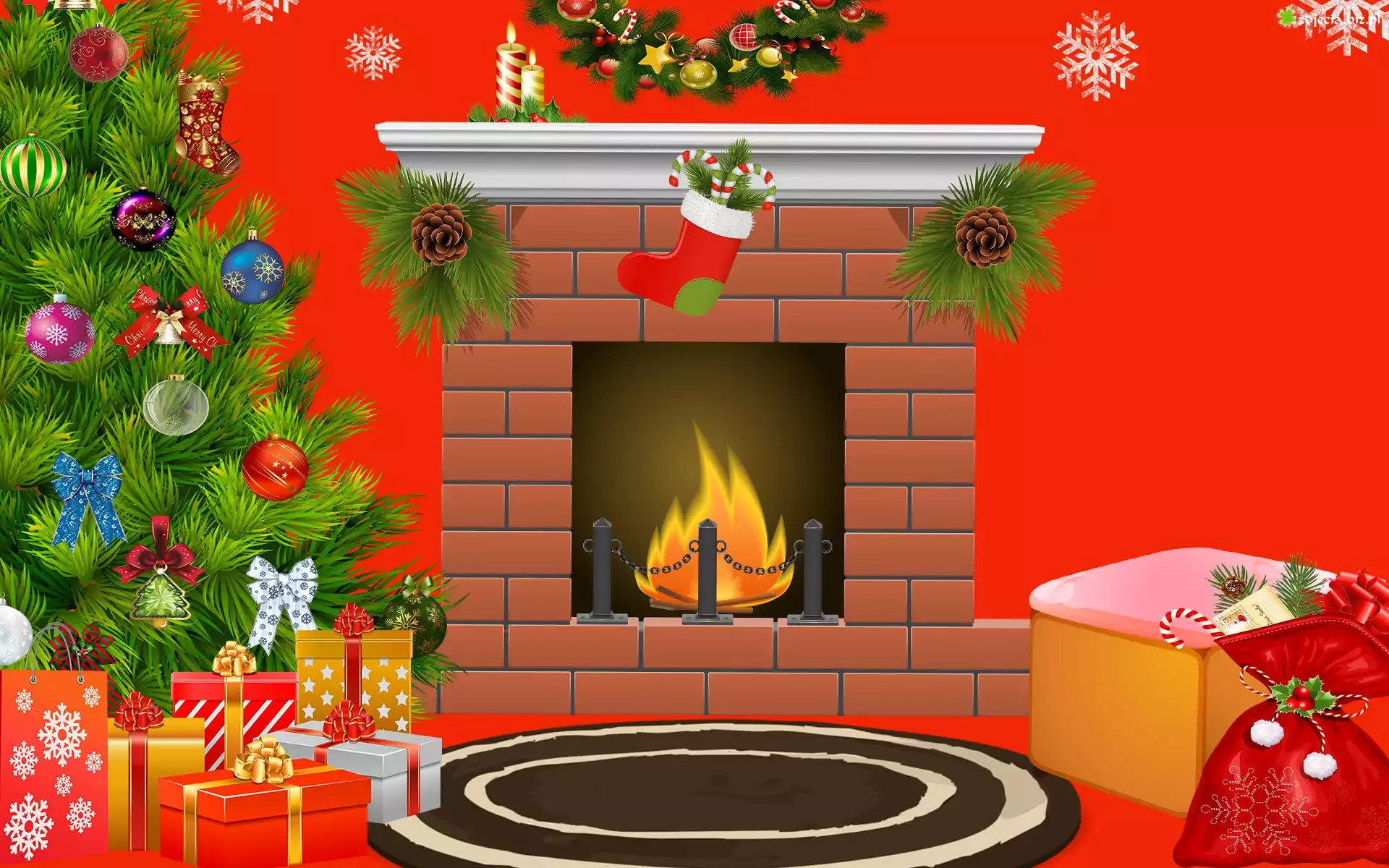 Zdjęcie Boże Narodzenie, Choinka, Kominek, Prezenty, 2D