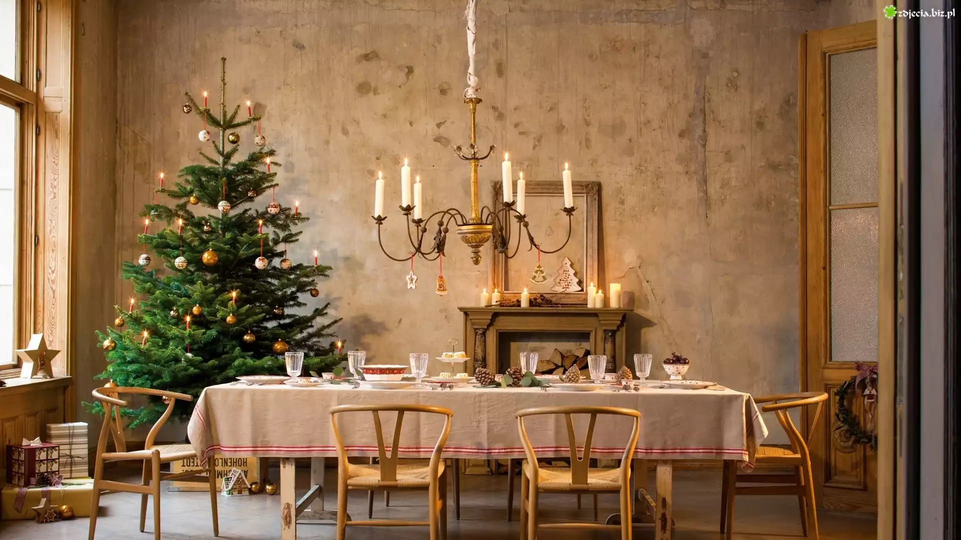 Zdjęcie Boże Narodzenie, Choinka, Stół, Krzesła