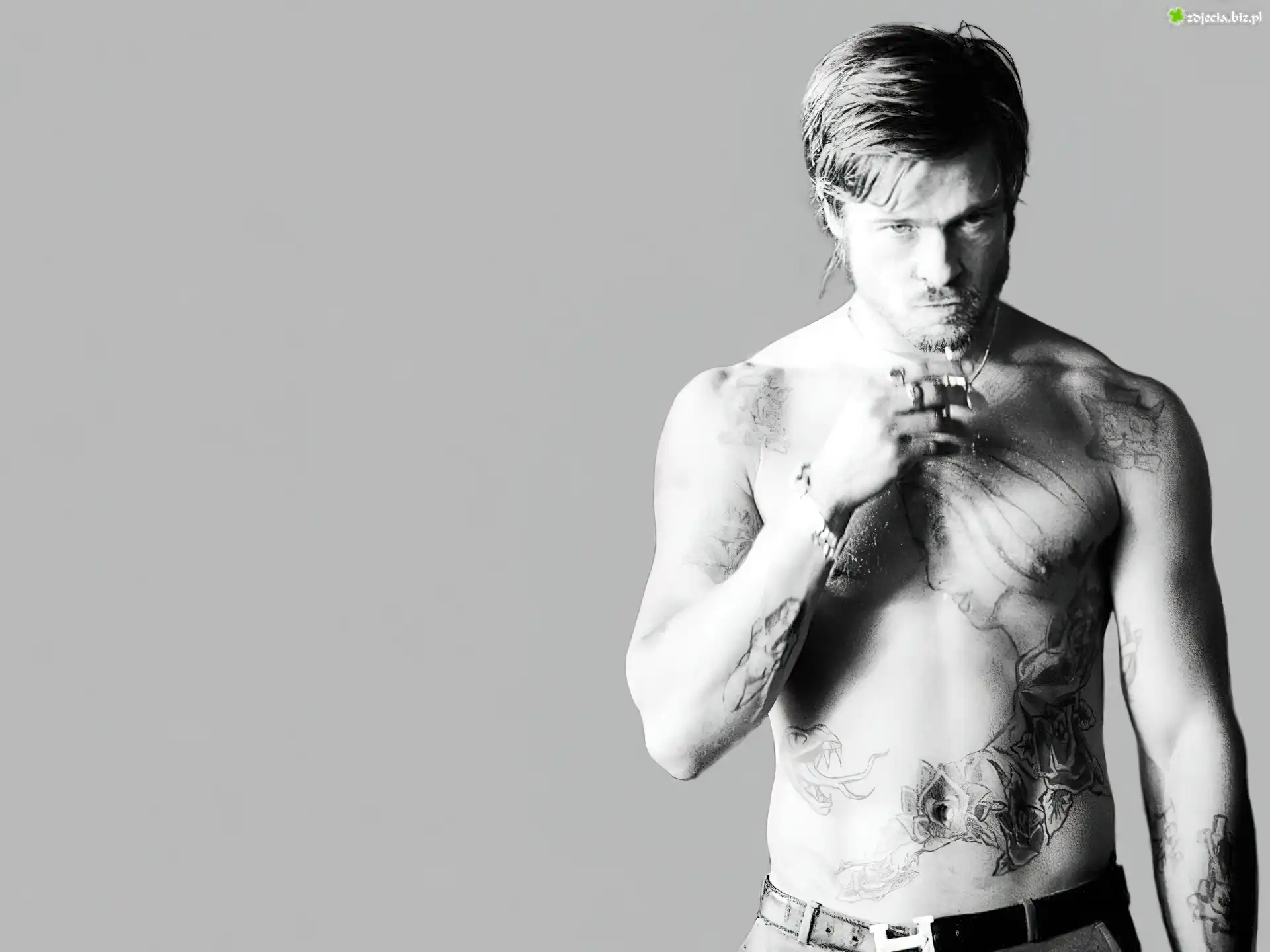 Zdjęcie, Brad Pitt,tatuaże, pasek