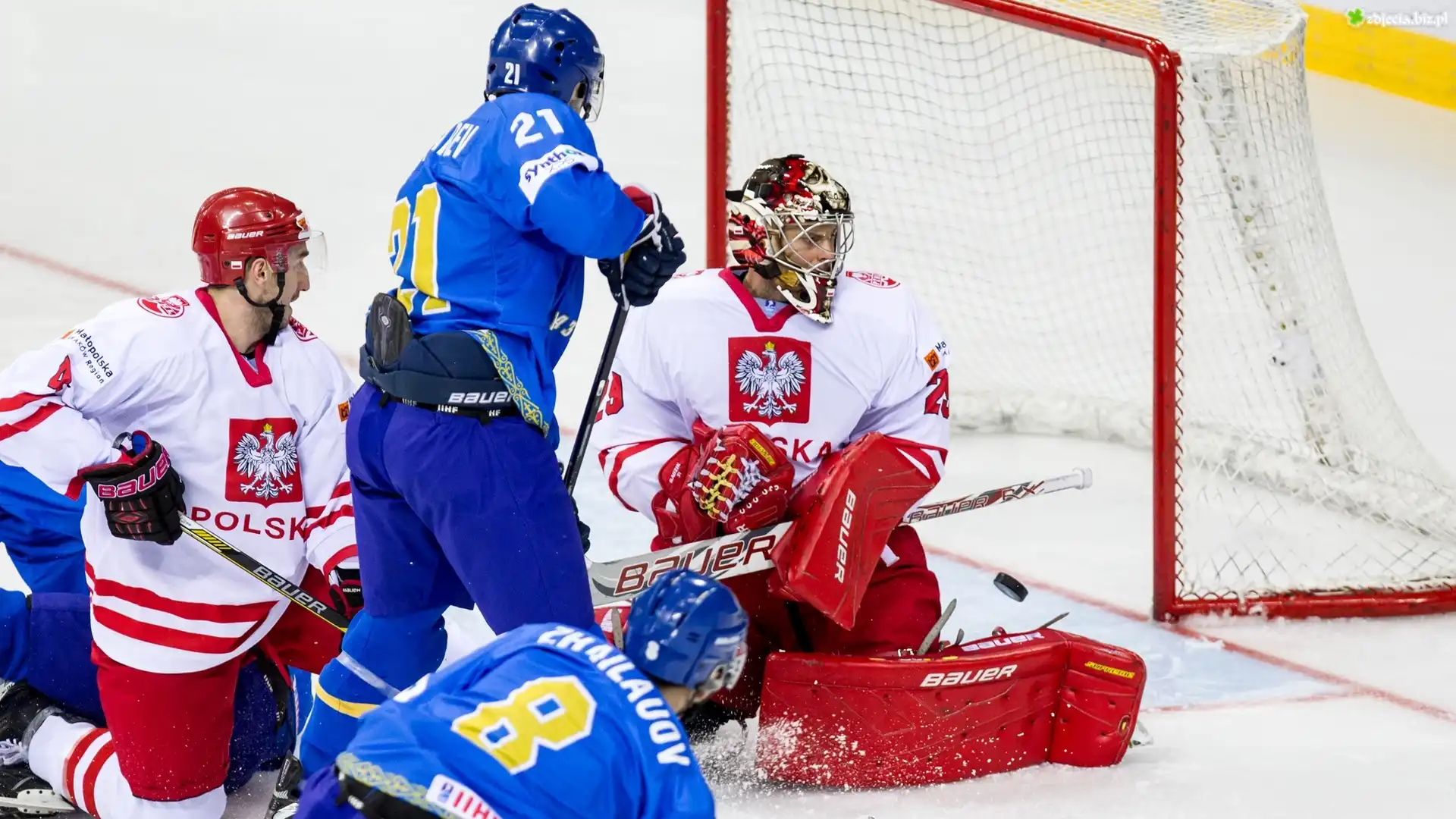 Zdjęcie Hokej, Bramkarz, Rafał Radziszewski, Zawodnicy, Bramka, Mecz, Mistrzostwa Świata, Polska-Kazachstan, 2015 |