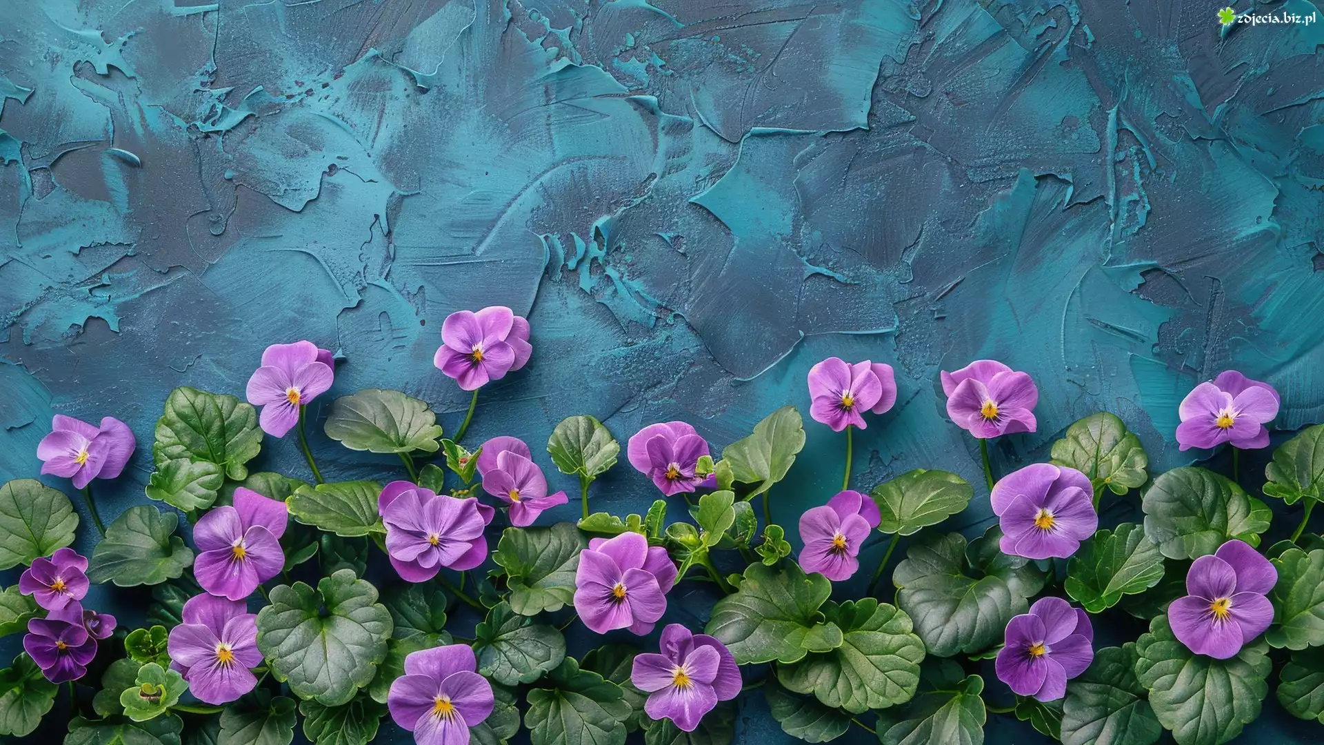 Zdjęcie Kwiat, Bratek, Liście, Ciemne, Tło