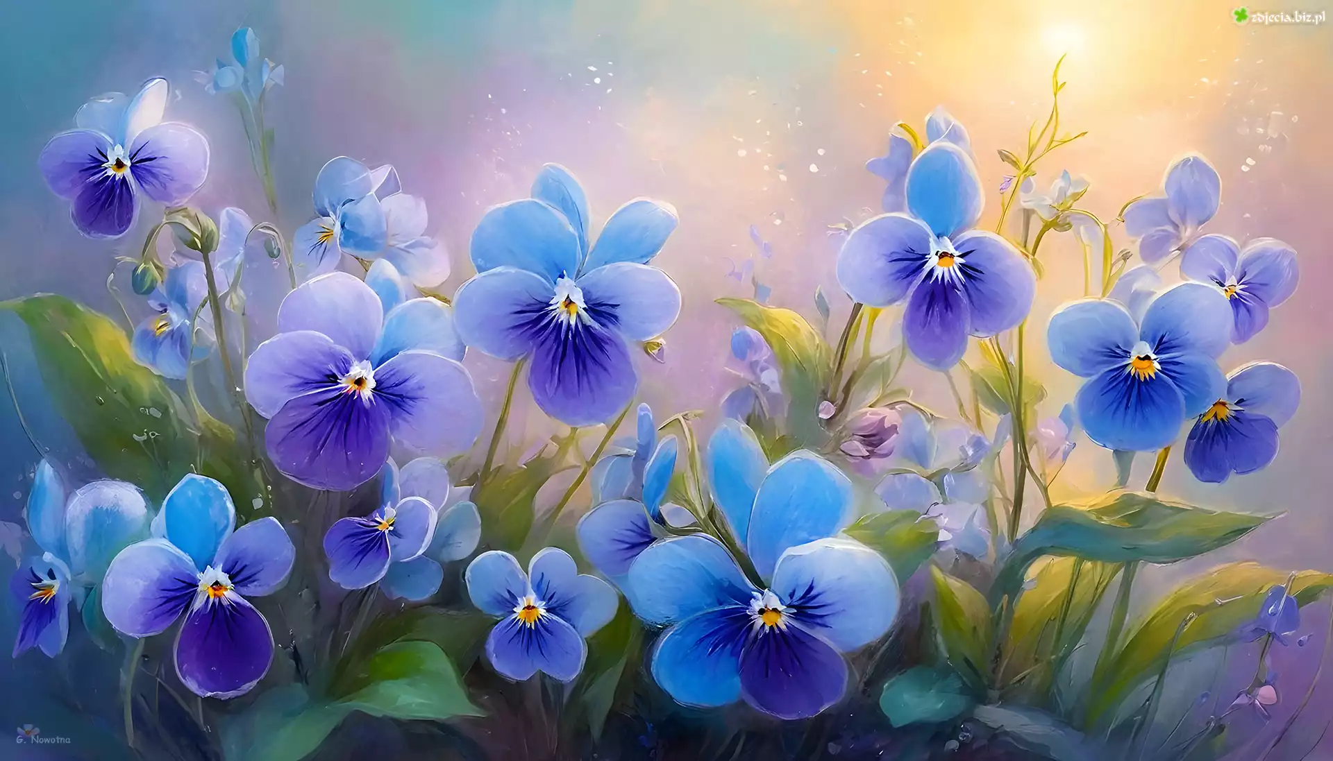 Zdjęcie, Niebieskie, Bratki, Kwiaty, Grafika AI