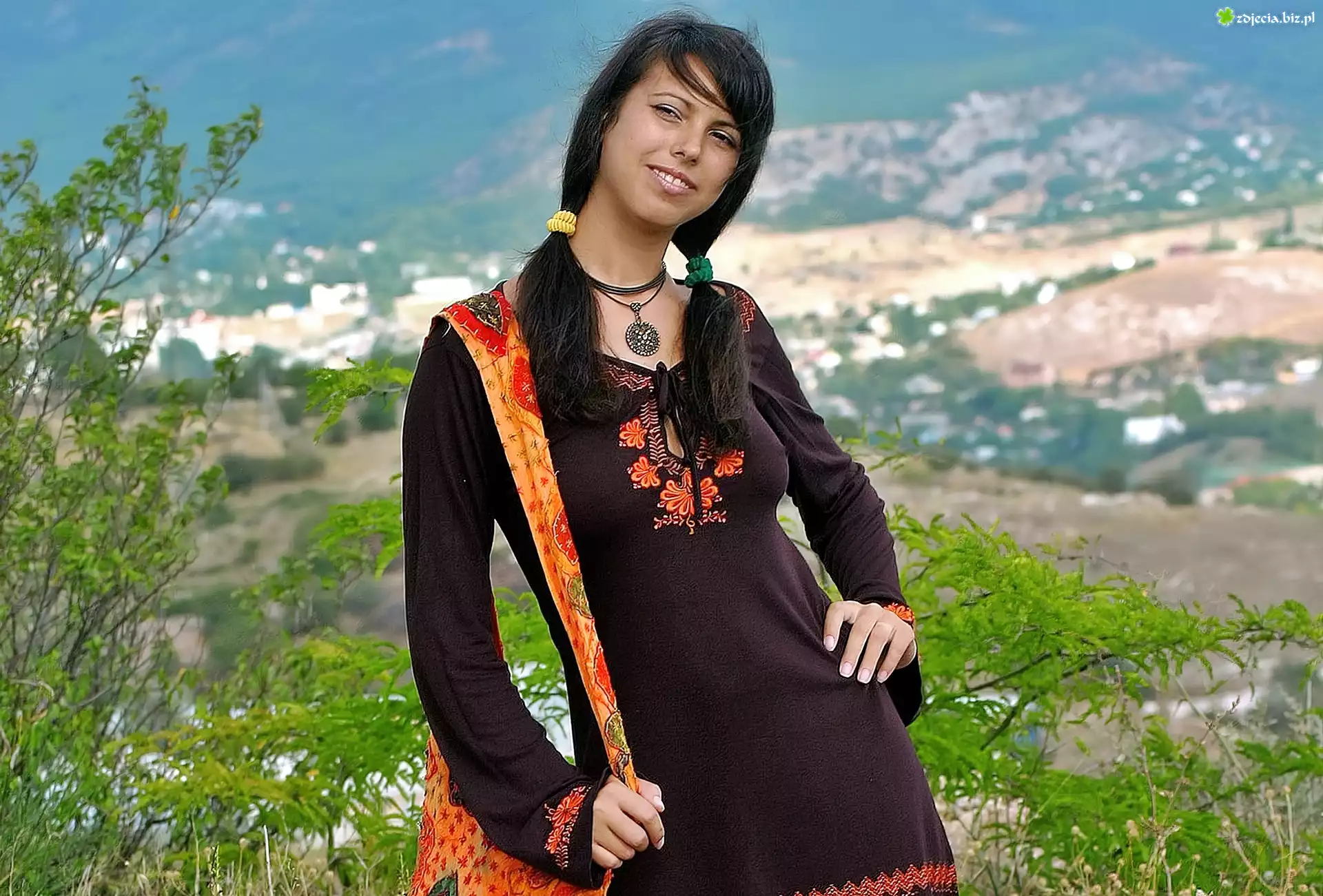 Zdjęcie Brązowa, Sukienka, Naszyjnik, Makijaż