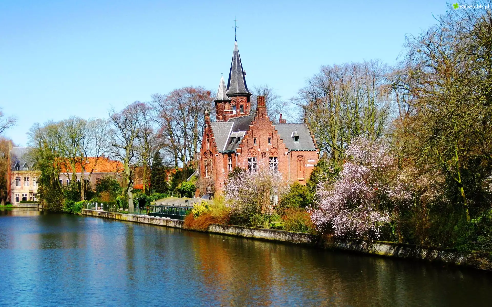 Zdjęcie Brugia, Kanał, Pałacyk, Domy, Drzewa