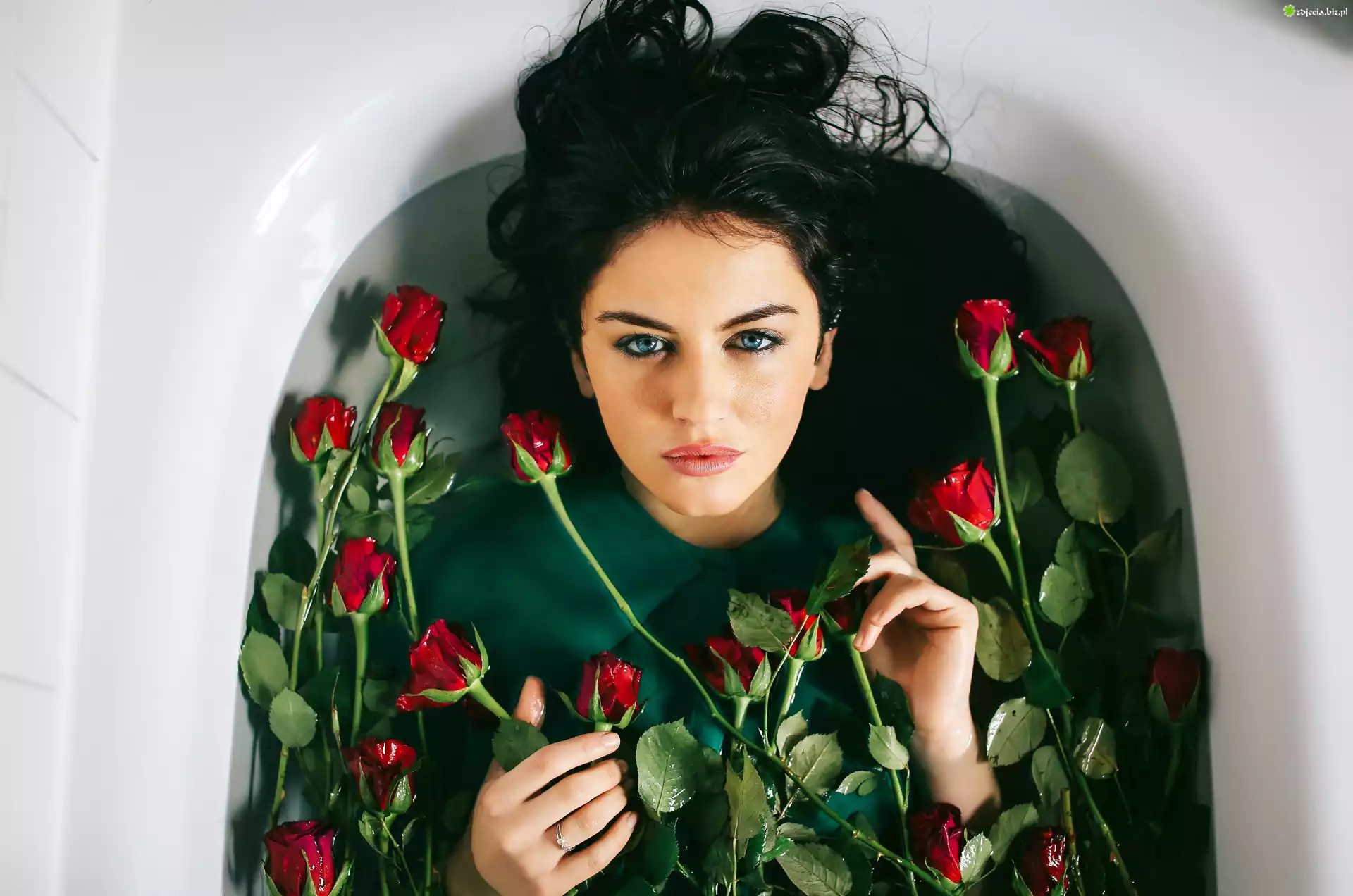 Zdjęcie, Brunetka, Aurela Skandaj, Czerwone, Róże
