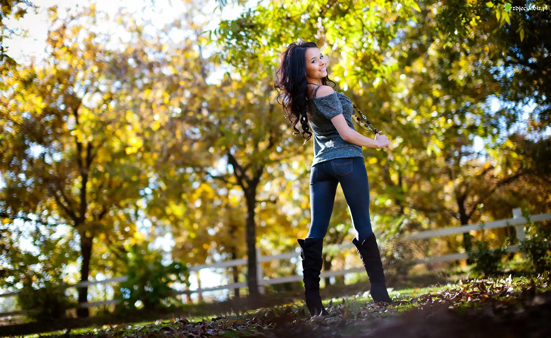 Zdjęcie Brunetka, Korale, Kozaki, Uśmiech