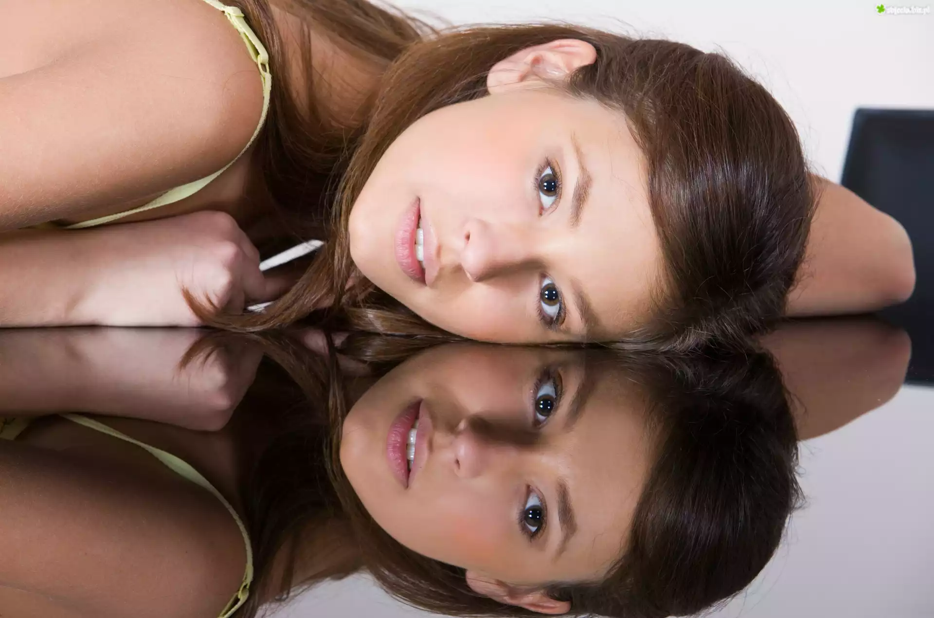 Zdjęcie Brunetka, Spojrzenie, Odbicie, Makijaż