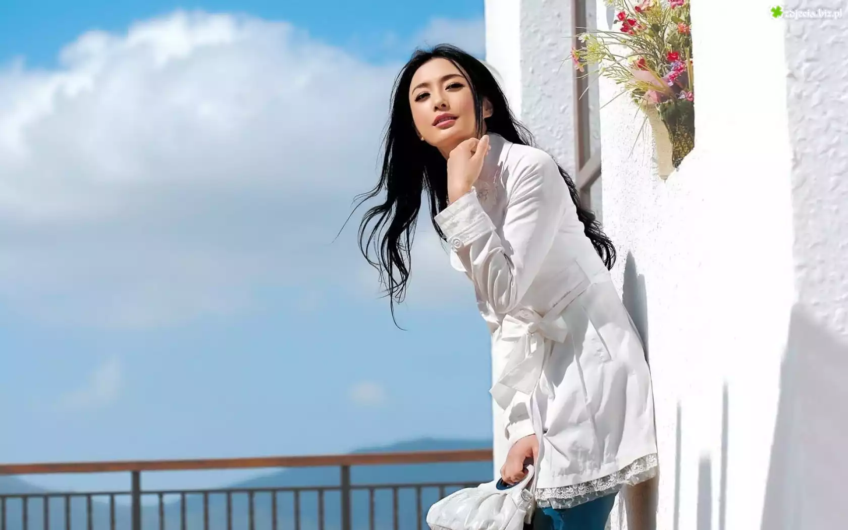 Zdjęcie Brunetka, Biała, Sukienka, Dom, Okno, Taras