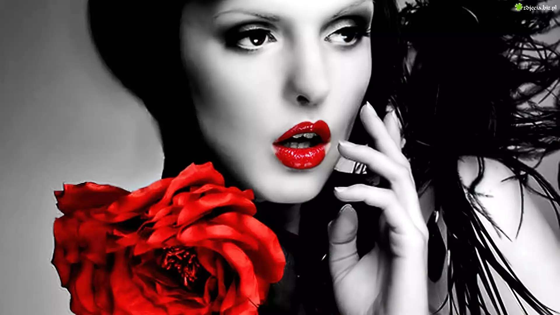 Zdjęcie Brunetka, Czerwone, Usta, Spojrzenie