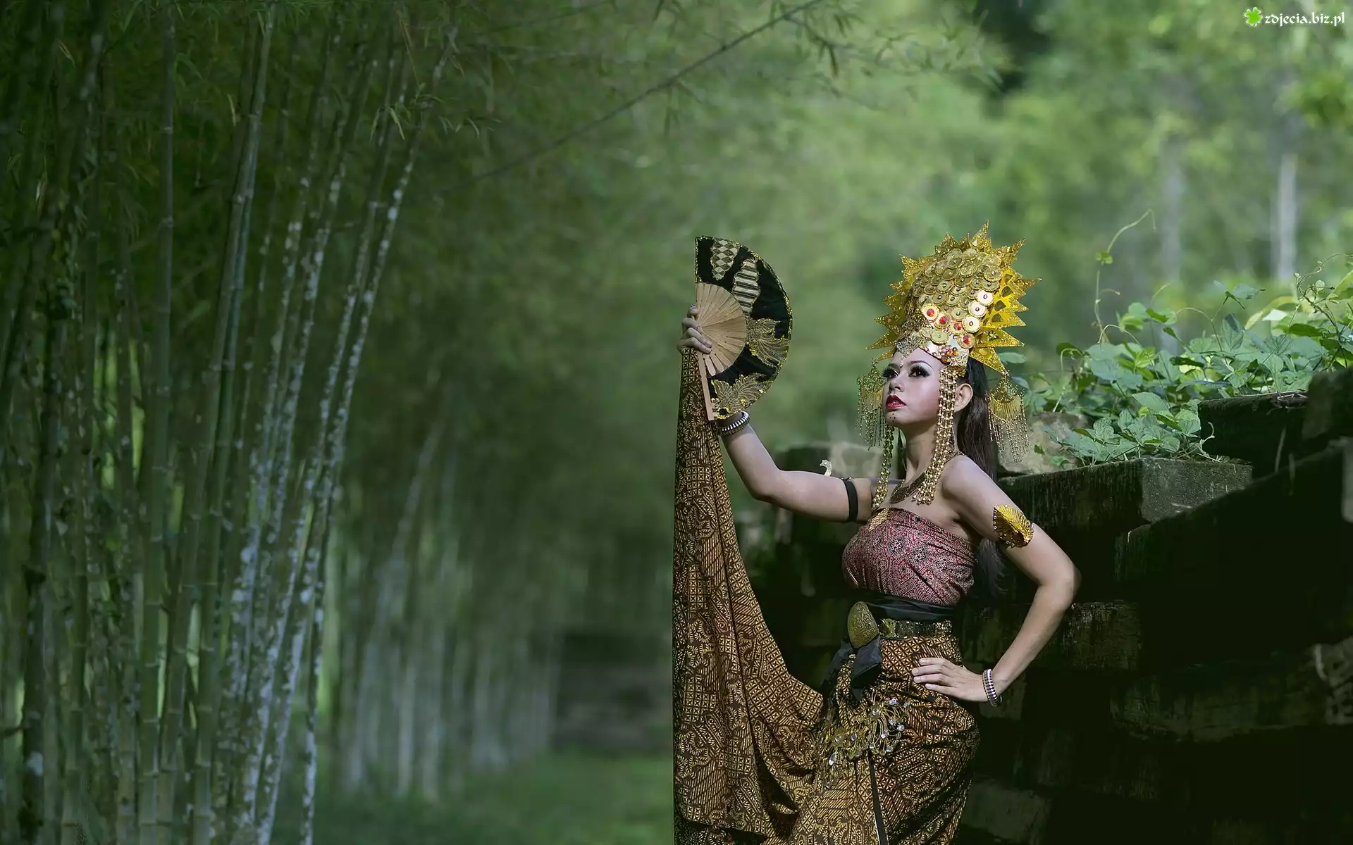 Zdjęcie Brunetka, Moda, Styl, Orientalny, Wachlarz, Las