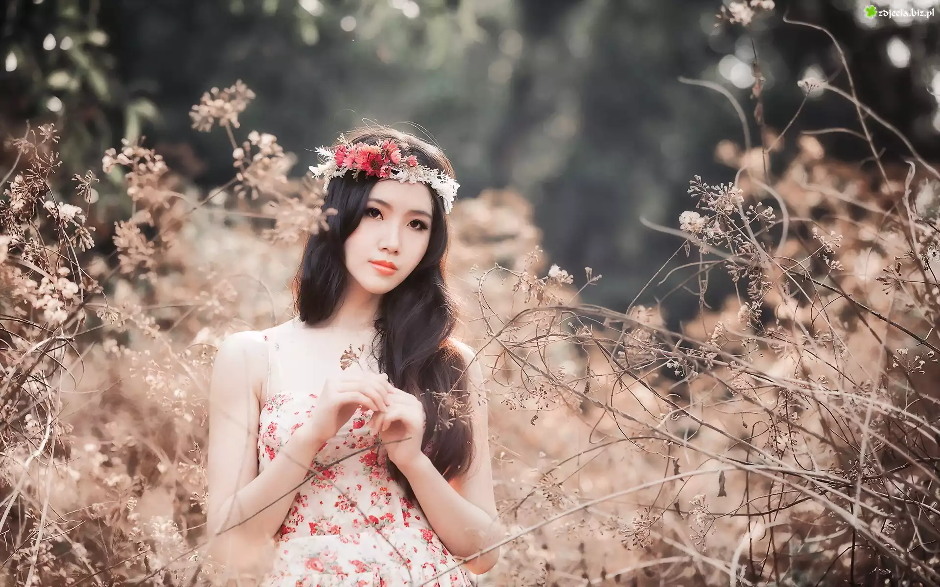 Zdjęcie Brunetka, Dziewczyna, Wianek, Trawy